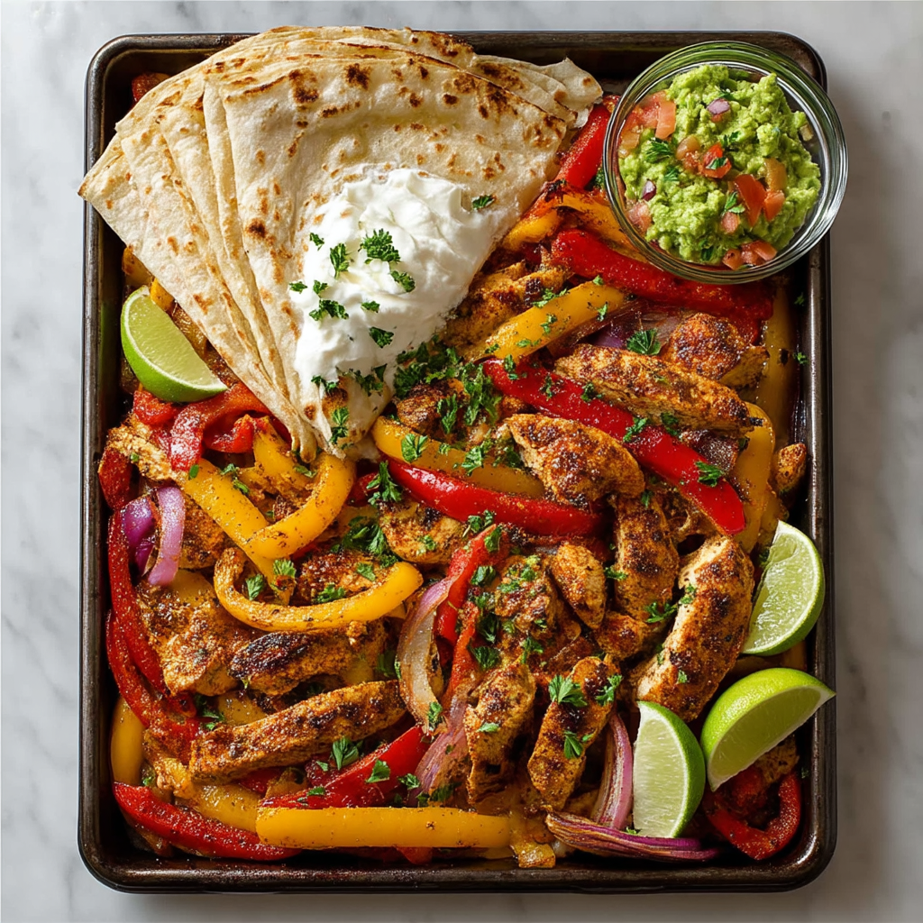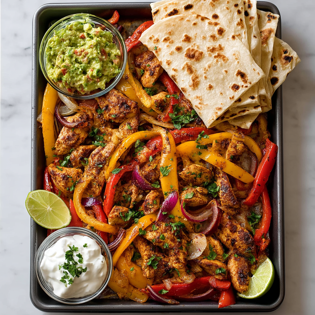 Quick and flavorful 30 Minute Sheet Pan Chicken Fajitas packed with tender chicken, colorful peppers, and smoky spices.