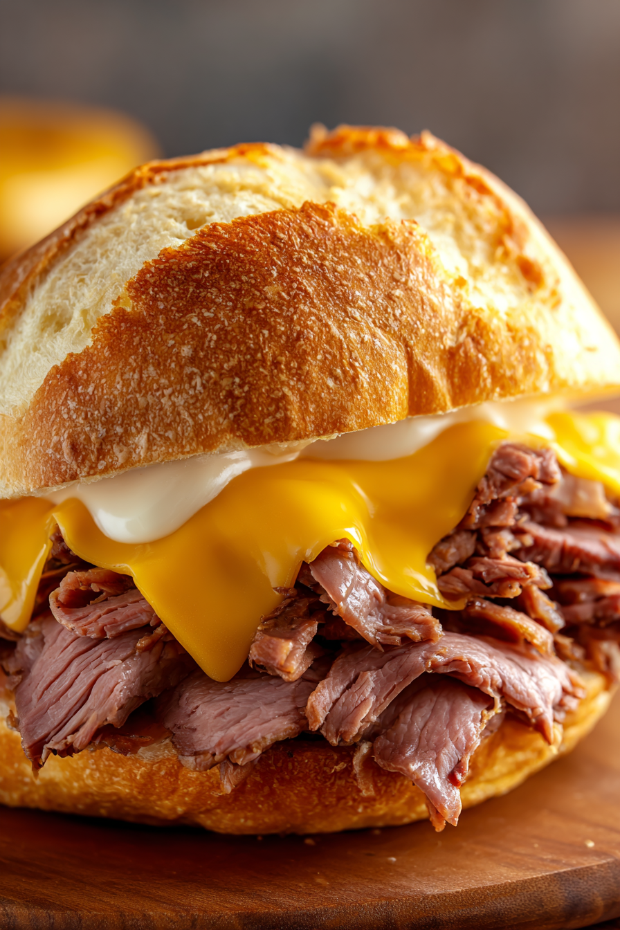 A classic fast-food favorite you can make at home. Tender roast beef, melty cheddar cheese sauce, and soft onion rolls come together for a crave-worthy sandwich.