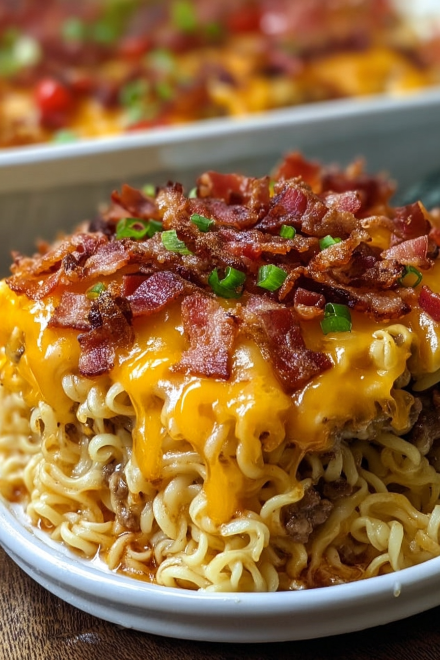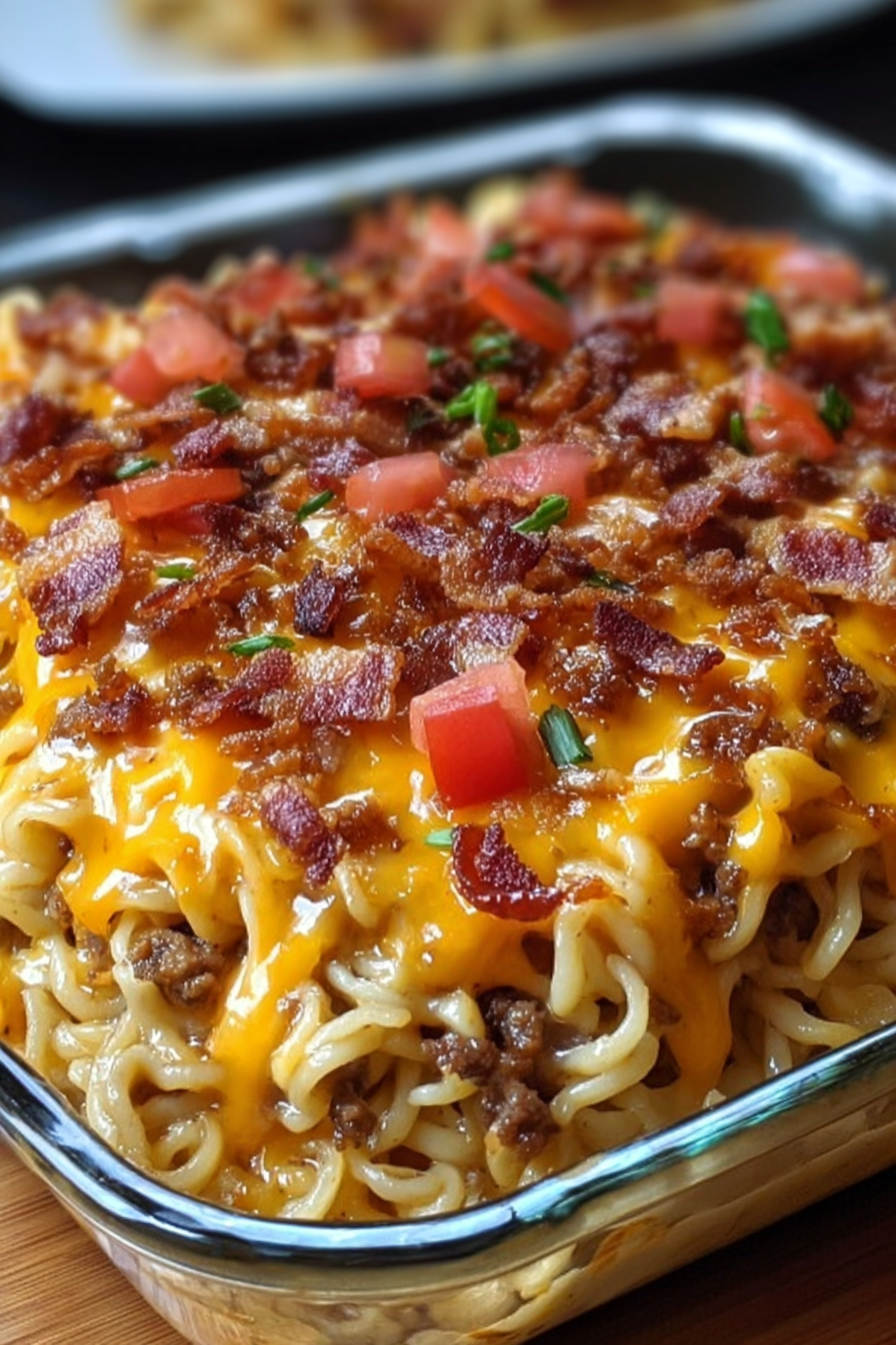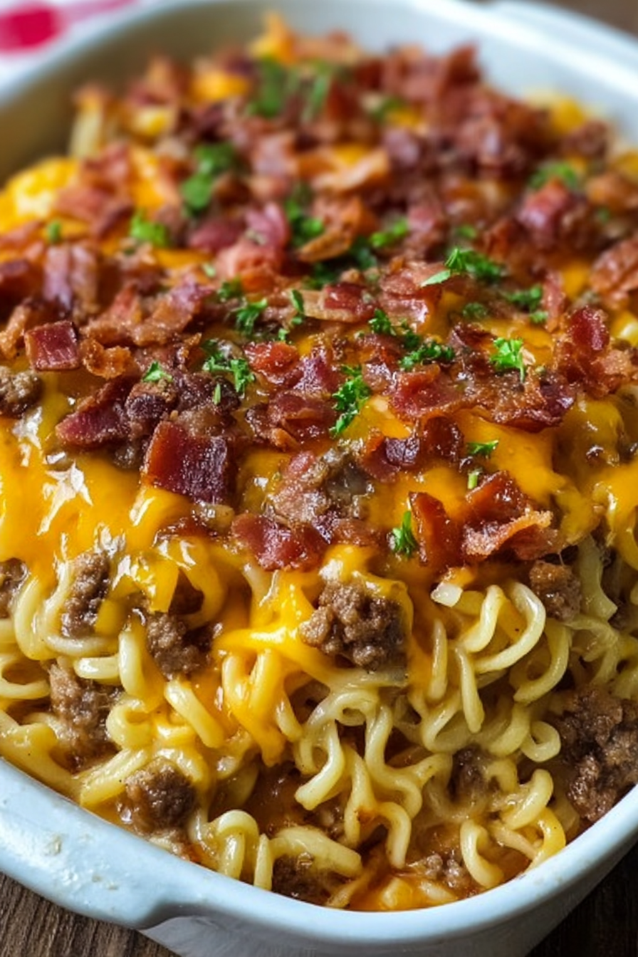 This recipe was inspired by busy weeknights when I needed something hearty, fun, and fast. Growing up, ramen noodles were a budget-friendly staple, and cheeseburgers were a weekend treat. One day, I decided to merge the two comfort foods into one casserole-style dish. The result was a cheesy, bacon-studded, noodle-packed bake that quickly became a family favorite. Over the years, I’ve refined it to balance richness with ease, making it the perfect go-to recipe for both quick dinners and casual gatherings.