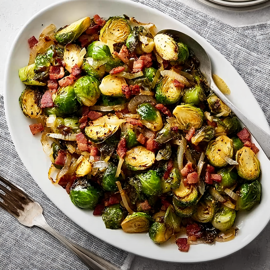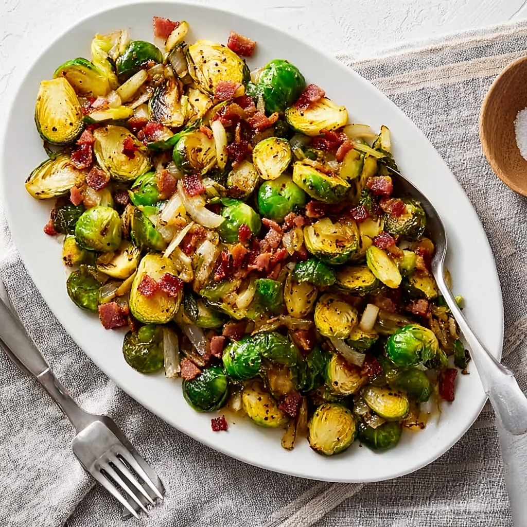 Don’t skip saving that tablespoon of bacon fat — it’s liquid gold! It infuses the onions and sprouts with smoky, savory richness that plain olive oil can’t match. If you want to elevate it even more, render thick-cut bacon for a meaty chew.