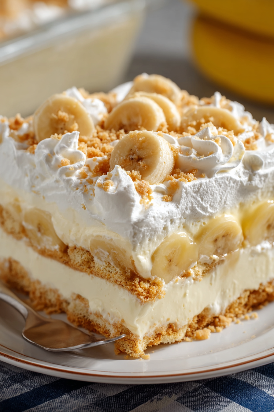 A creamy, layered no-bake dessert with vanilla wafers, banana pudding, and whipped topping. Perfect for gatherings or potlucks!