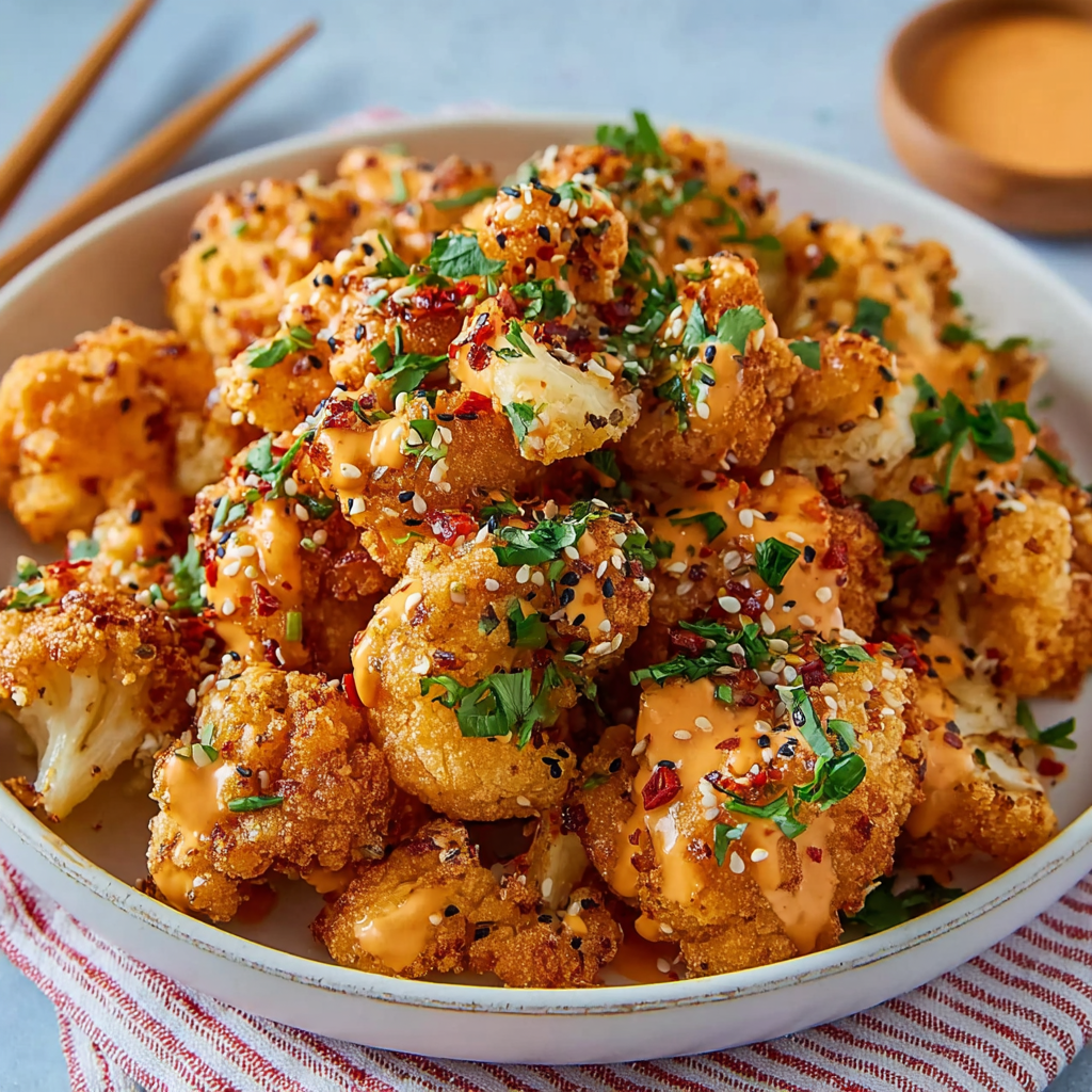 Crispy Bang Bang Cauliflower tossed in creamy, spicy sauce—perfect as an appetizer, snack, or meatless main.