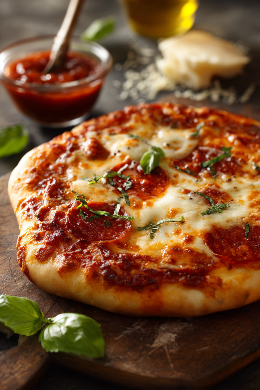 This recipe is incredibly versatile. Swap all-purpose flour for bread flour if you prefer a chewier crust, or use half whole wheat flour for a nuttier flavor. For gluten-free diets, choose a gluten-free flour blend designed for yeast breads. As for sauces, try a pesto base for a fresh, herby twist, or go bold with barbecue sauce for a smoky flavor profile. You can also experiment with cheeses—mozzarella is classic, but provolone, gouda, or goat cheese add unique flair.