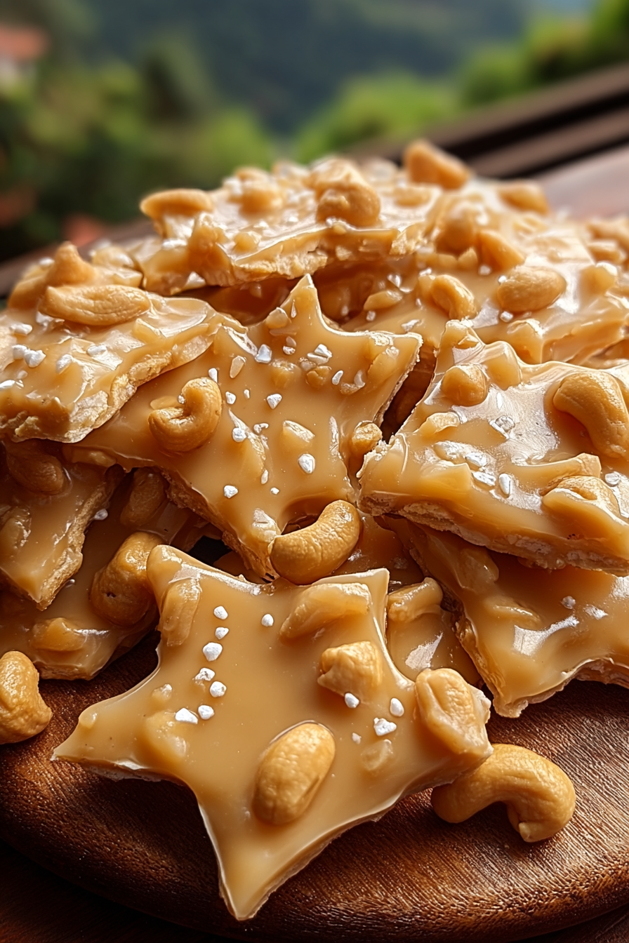 Cashew halves: Roasting or lightly toasting the cashews beforehand enhances their natural nuttiness, making the crunch more flavorful. Cashews are softer than some nuts, so they provide a nice contrast to the hard caramel.