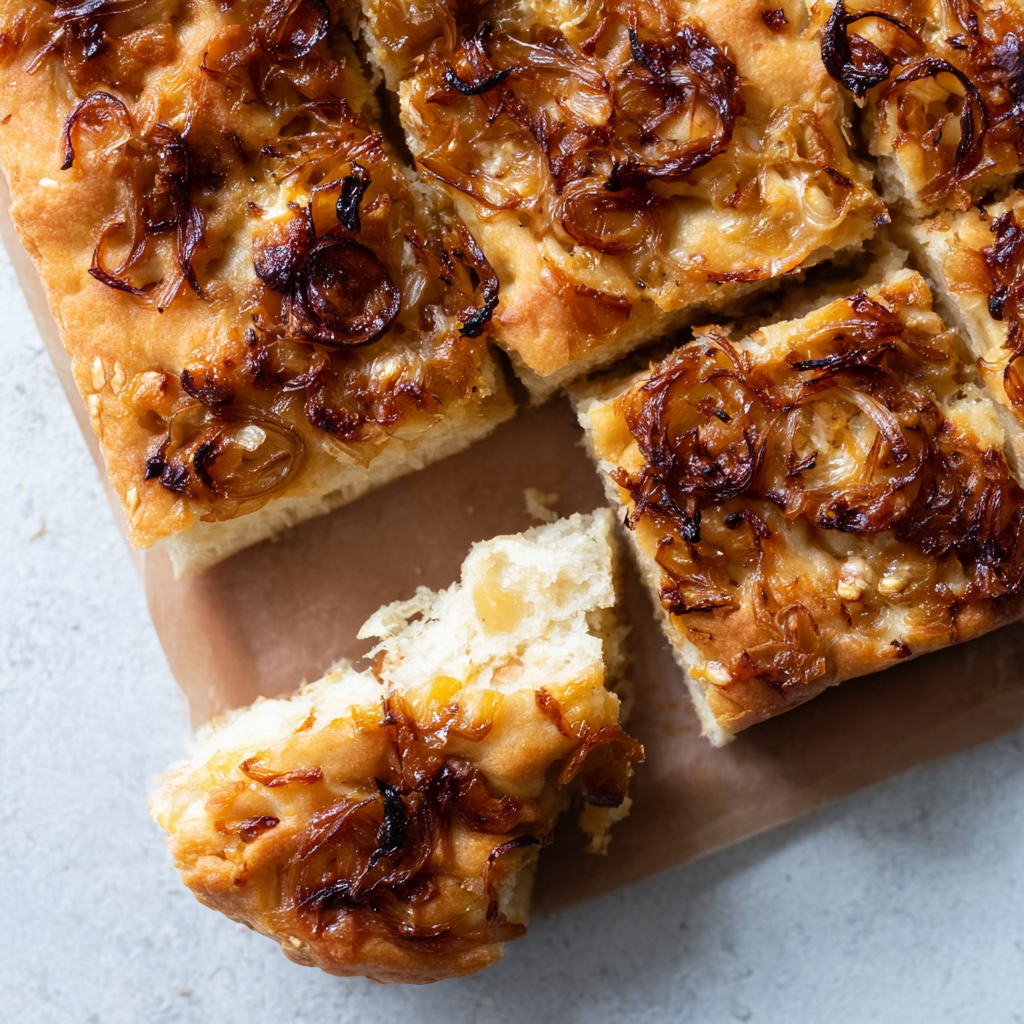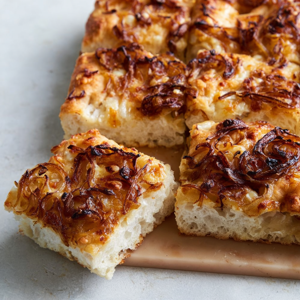 Caramelized Onion Focaccia: Golden, Cheesy, and Irresistibly Soft