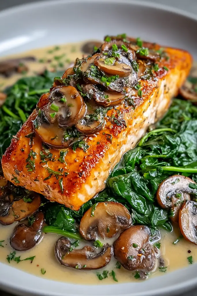 Introduction If you’ve ever craved a meal that strikes the perfect balance between indulgent and wholesome, this Garlic Butter Salmon with Spinach & Mushrooms in Creamy Sauce is it. The …
