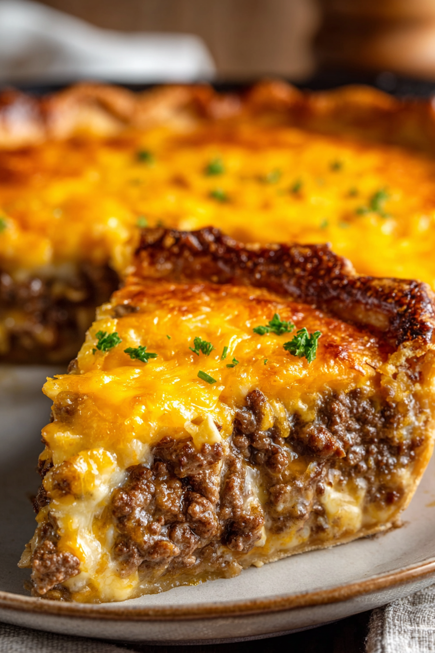 My inspiration for making Cheeseburger Pie came from busy evenings when I wanted something filling yet simple. The idea of baking ground beef and cheese into a pie-like casserole felt nostalgic, like something from classic community cookbooks. The first time I baked this, I served it with a fresh side salad and some pickles—just like you would with a burger—and it instantly became a family favorite. Over time, I experimented with different cheeses, crust variations, and seasonings, and now I’ve perfected a recipe that balances ease with big flavor.