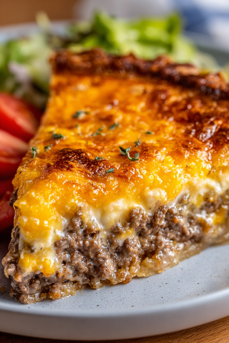 Cheeseburger Pie stores well in the refrigerator for up to 3 days. Simply cover tightly with foil or transfer slices into airtight containers. To reheat, warm in the oven at 350°F (175°C) for about 15 minutes, or microwave individual portions for a quicker option.