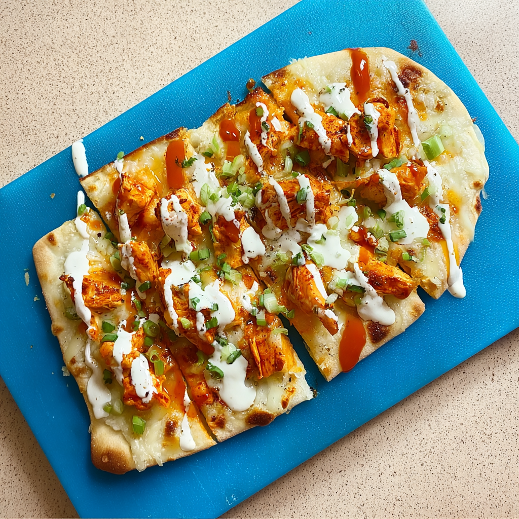 Whether this becomes your go-to appetizer, your favorite quick dinner, or your new comfort food, I hope it brings as much joy to your kitchen as it has to mine. With its melty cheese, tangy Buffalo spice, crisp naan base, and refreshing ranch drizzle, this Buffalo Chicken Flatbread delivers big flavor in every single bite. Enjoy it warm, share it generously, and don’t be surprised if it becomes a repeat request from friends and family!