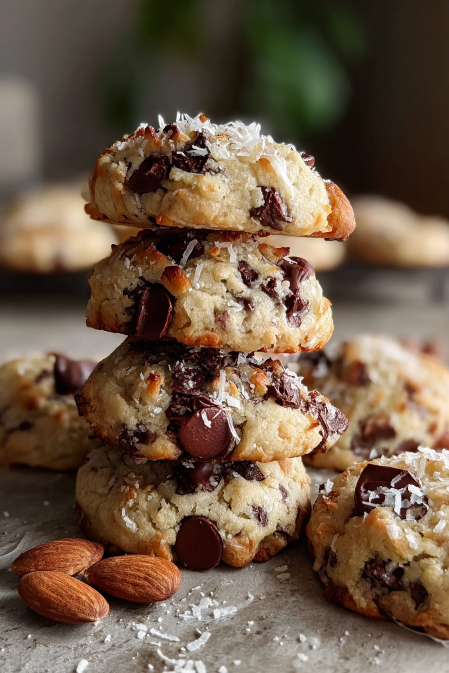 What makes this recipe truly special is the balance of textures—the chewiness from the coconut, the melty richness from the chocolate chips, and the crunch of almonds. These cookies became a family favorite almost instantly, and now I bake them for holidays, bake sales, and cozy nights at home. They never last long on the plate, which is always the best compliment a baker can receive.