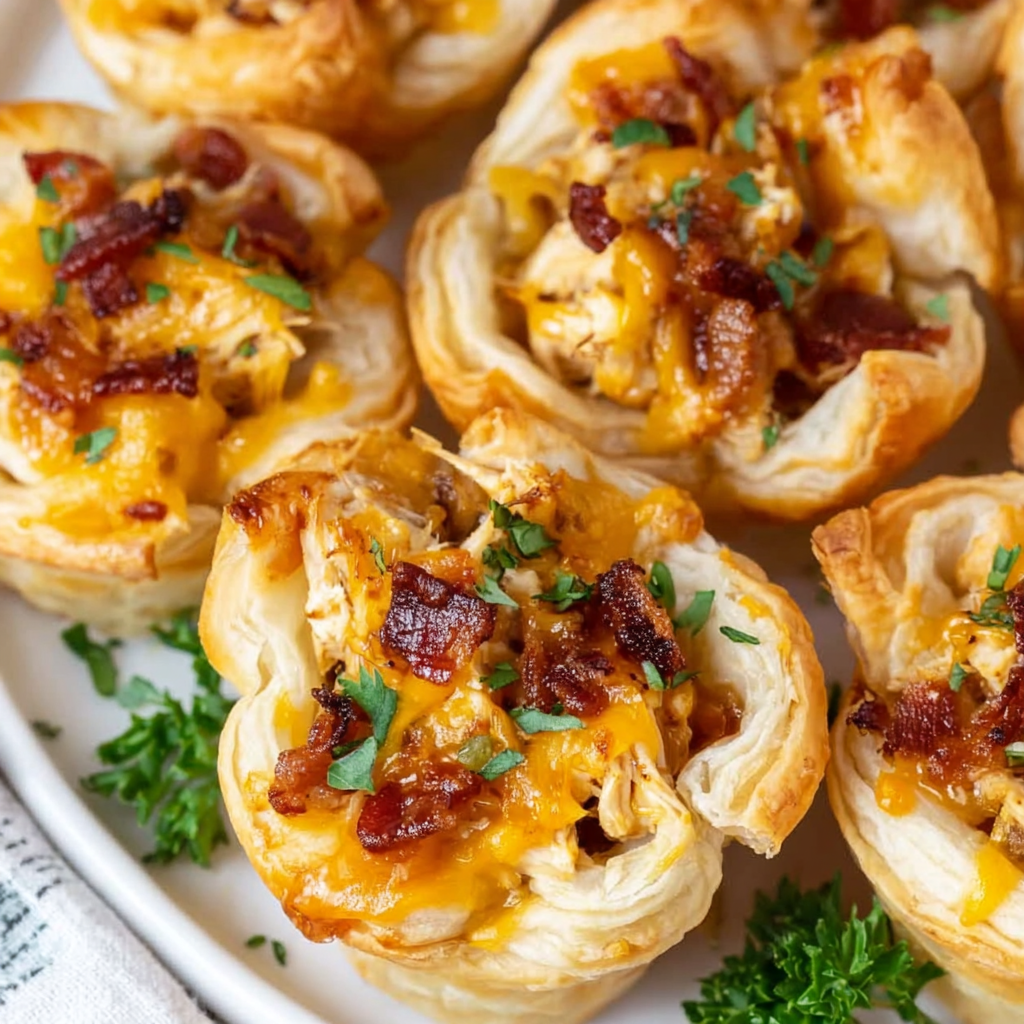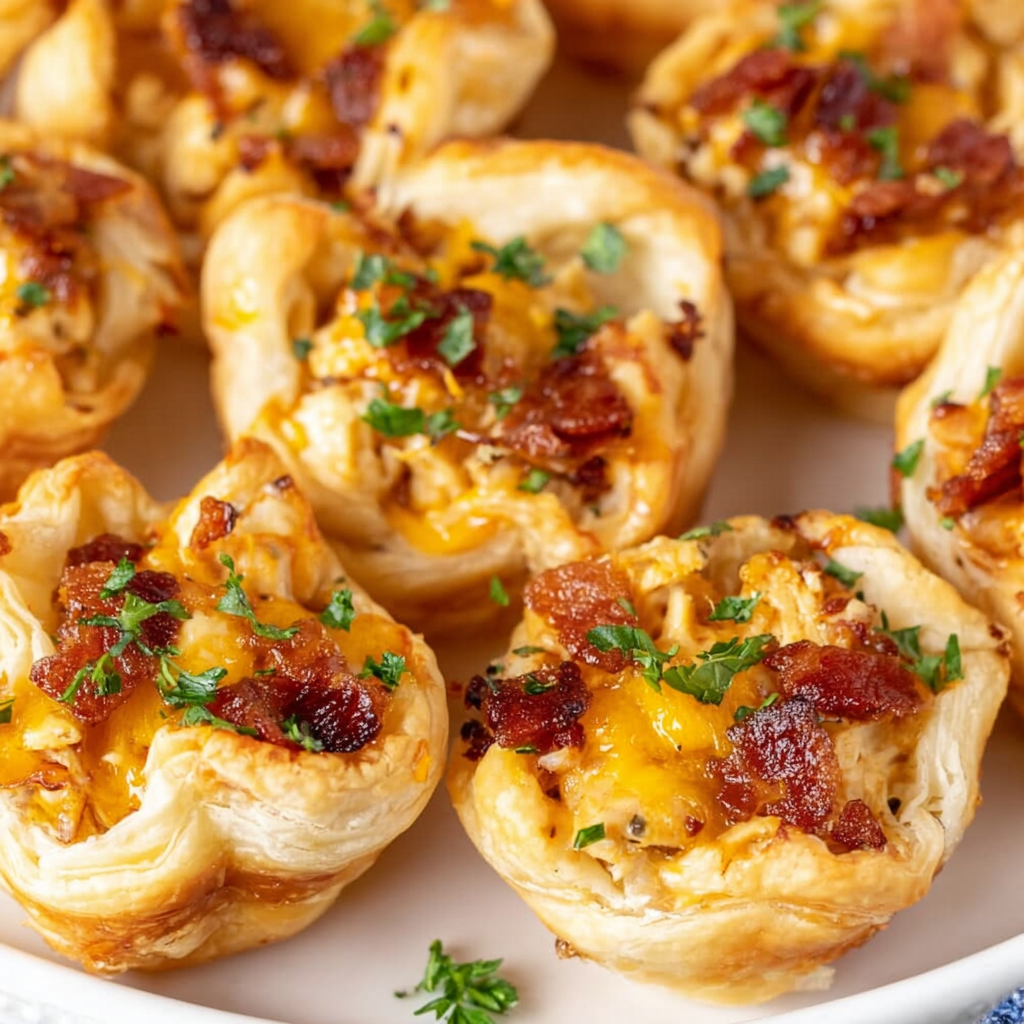 Delicious Chick-fil-A Sauce Pastry Puffs with chicken, bacon, and cheddar cheese—perfect for appetizers, snacks, or game day treats.
