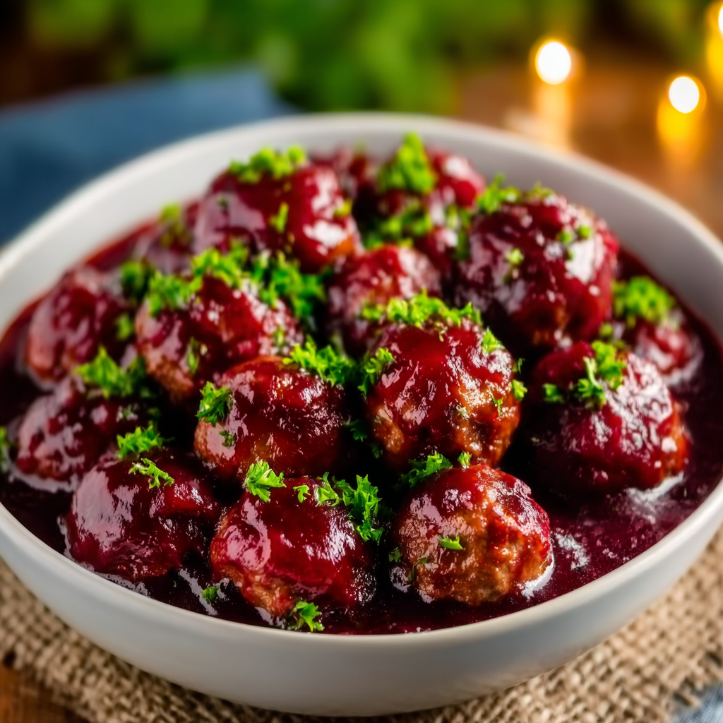 For a plant-based twist, use vegan “meatballs” made from lentils or plant protein. The cranberry-chili sauce pairs wonderfully with vegan alternatives and keeps the same sweet-savory balance.