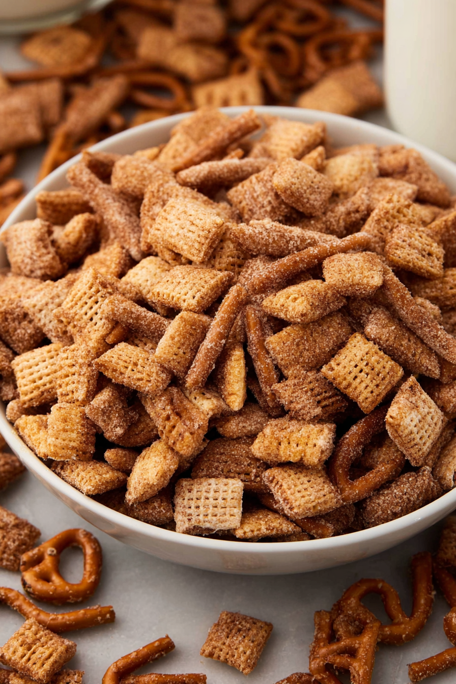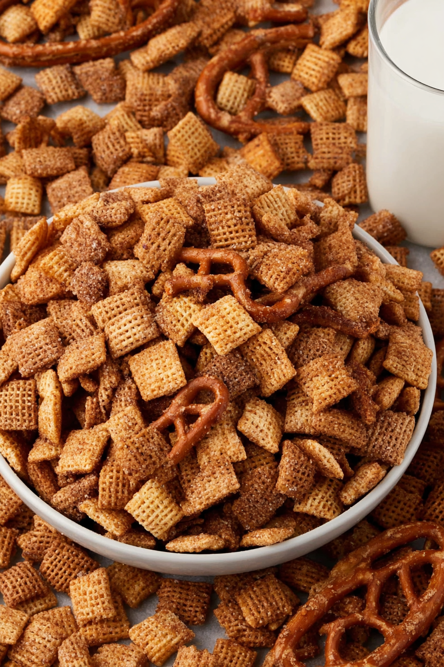 Can I use a different cereal? Yes! Corn Chex or Wheat Chex both work well and bring slightly different textures and flavors.
