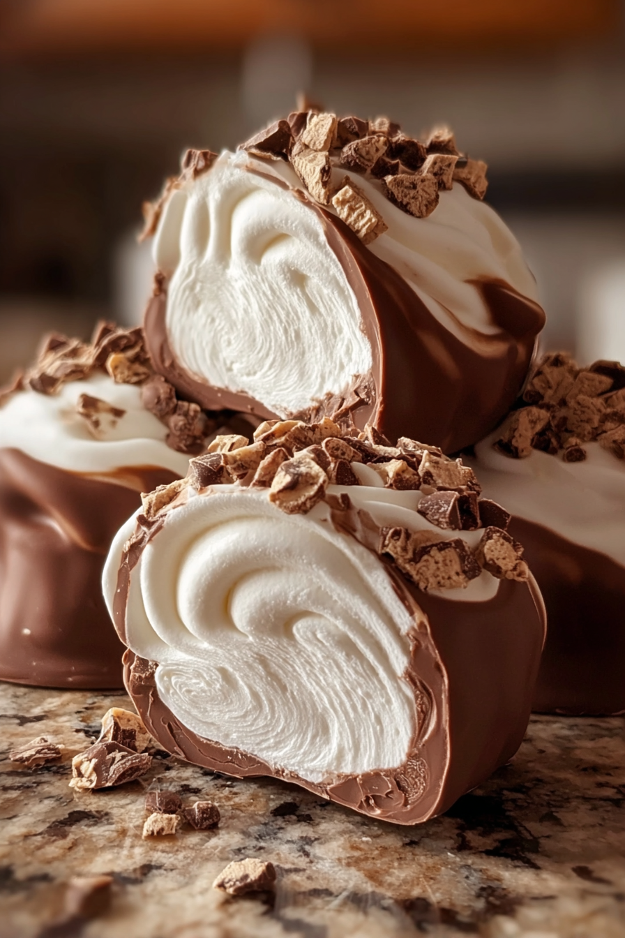- Work in small batches when dipping so the filling stays frozen and easy to handle.