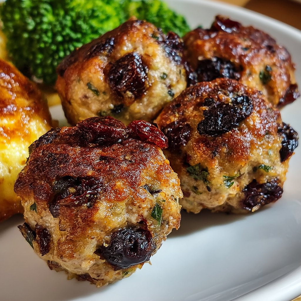Delicious Cranberry Turkey Stuffing Balls with herbs, cranberry sauce, and turkey for a perfect holiday appetizer or side dish.