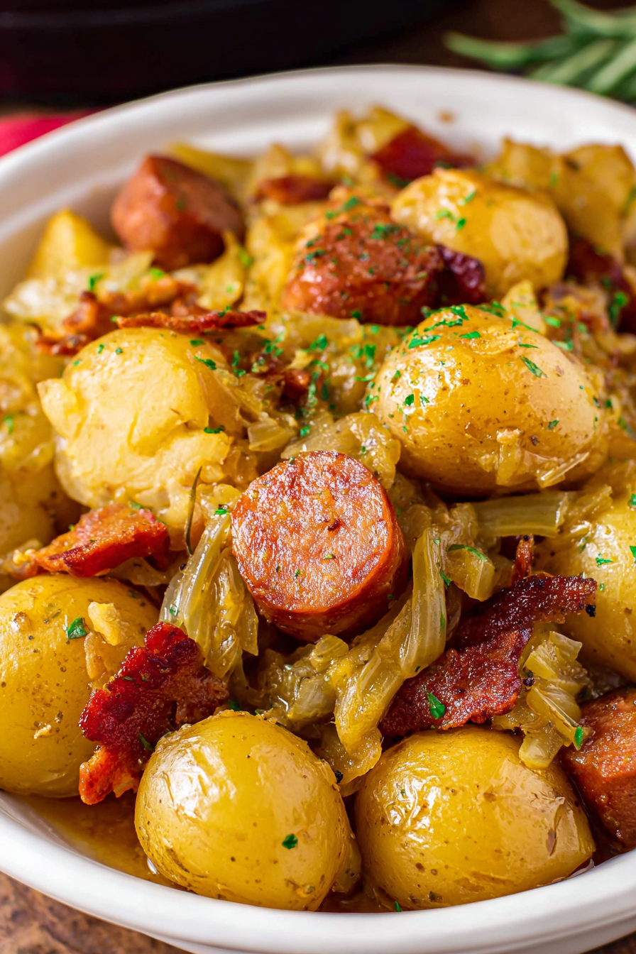 The beauty of this dish lies in its simplicity. Yellow potatoes form the hearty base of the recipe. These potatoes are naturally buttery and hold their shape well during slow cooking. When quartered, they cook evenly and absorb the seasoning mix beautifully.