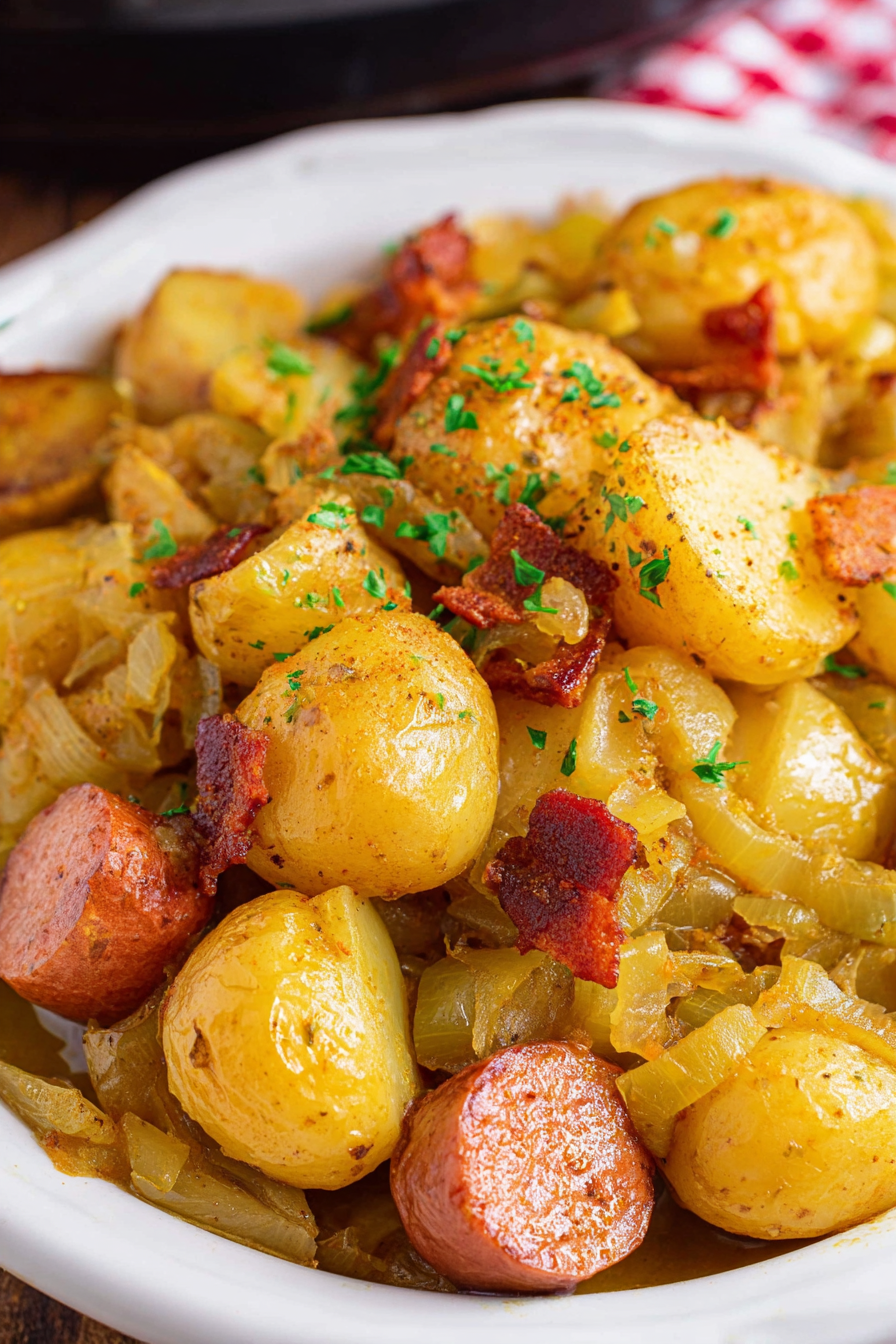 - Can I make this recipe without a slow cooker? Yes! You can bake the potatoes in a covered casserole dish at 350°F for about 1 hour until tender.