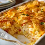 Dolly Parton’s casserole pairs beautifully with a variety of sides. For a complete Southern spread, serve it with green beans, collard greens, or a crisp garden salad. Cornbread or dinner rolls make excellent accompaniments to soak up the creamy filling. If you’d like to keep things lighter, pair the casserole with roasted vegetables or a simple cucumber and tomato salad. For drinks, sweet iced tea or lemonade captures the Southern charm, while a chilled glass of white wine adds a touch of elegance.
