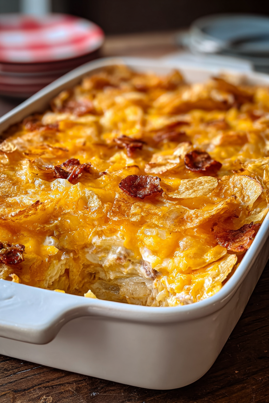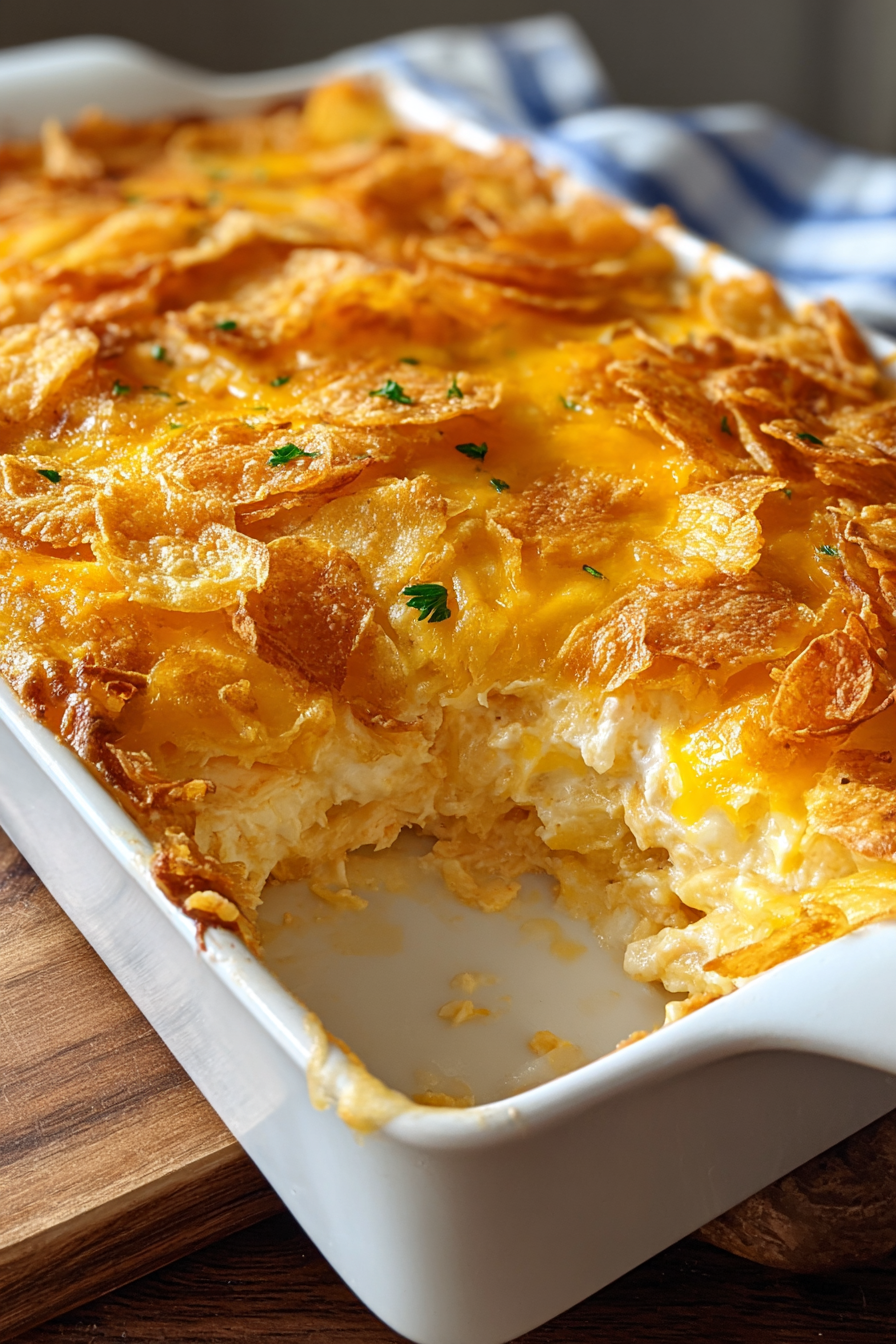 Crushed buttery crackers: This final touch gives the casserole a crunchy, golden topping. It provides contrast to the creamy interior and makes every bite more satisfying.