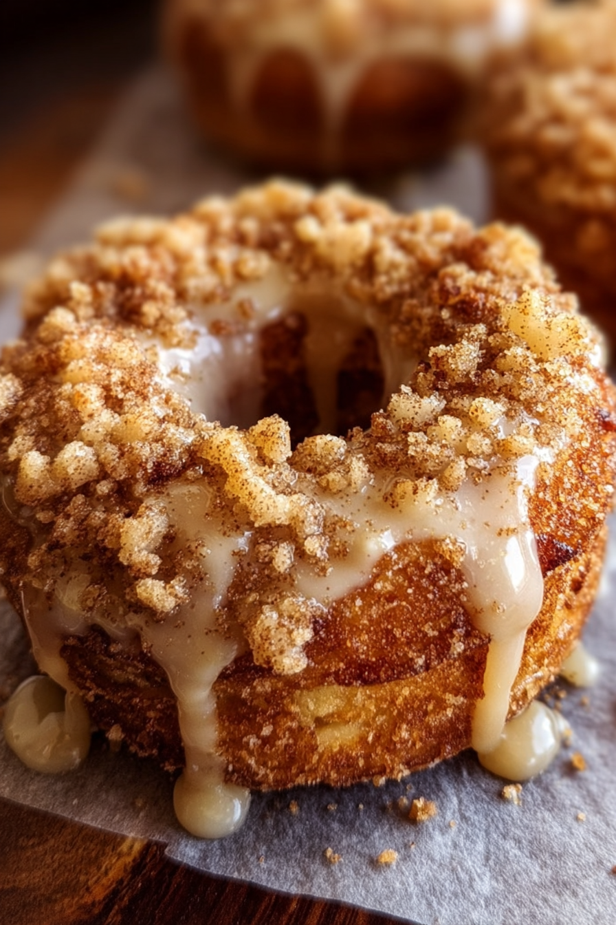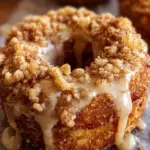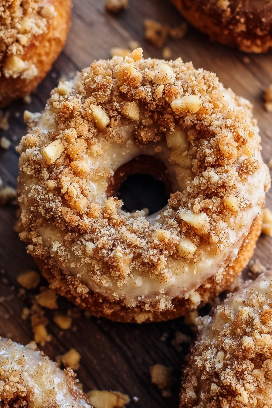 Soft, spiced apple donuts topped with a buttery crumb layer. A cozy baked treat perfect for breakfast, brunch, or a fall-inspired dessert.