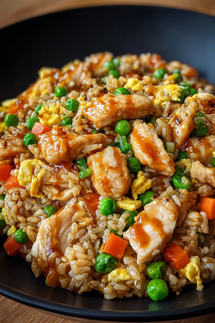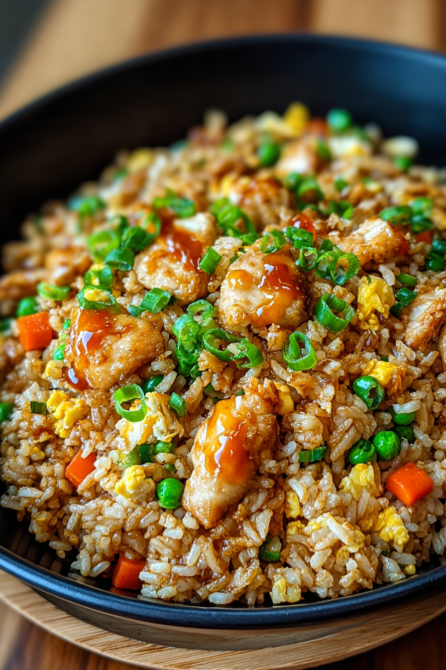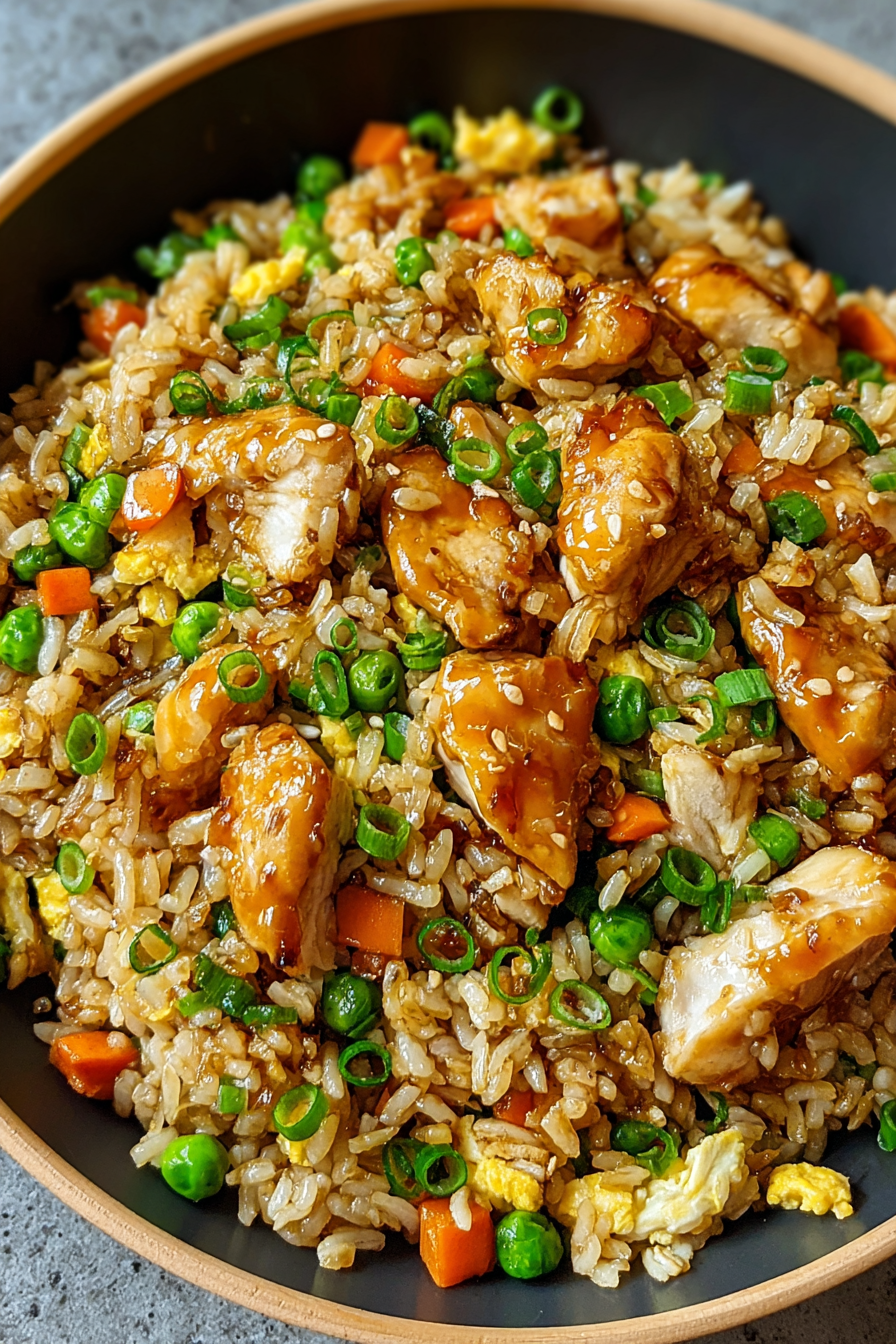 This fried rice keeps well in an airtight container in the refrigerator for up to 4 days. To reheat, simply microwave or rewarm in a skillet with a splash of water to restore moisture. If you’d like to freeze, portion it into freezer-safe bags or containers and store for up to 2 months. When ready to serve, thaw overnight in the fridge and reheat in a skillet. You can also prep the chicken and sauce in advance, storing them separately, then assembling everything fresh when you’re ready to eat.
