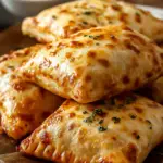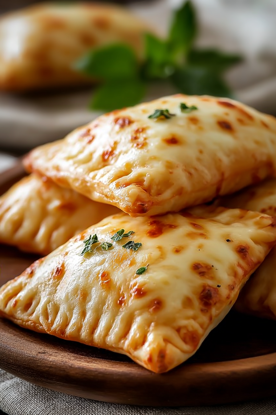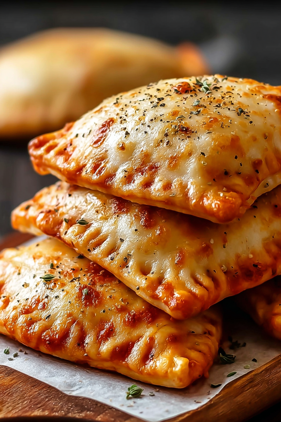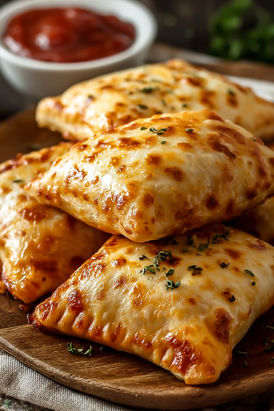 Golden, flaky pizza pockets stuffed with gooey mozzarella and tangy pizza sauce. A quick, kid-friendly snack or meal made in under 30 minutes.