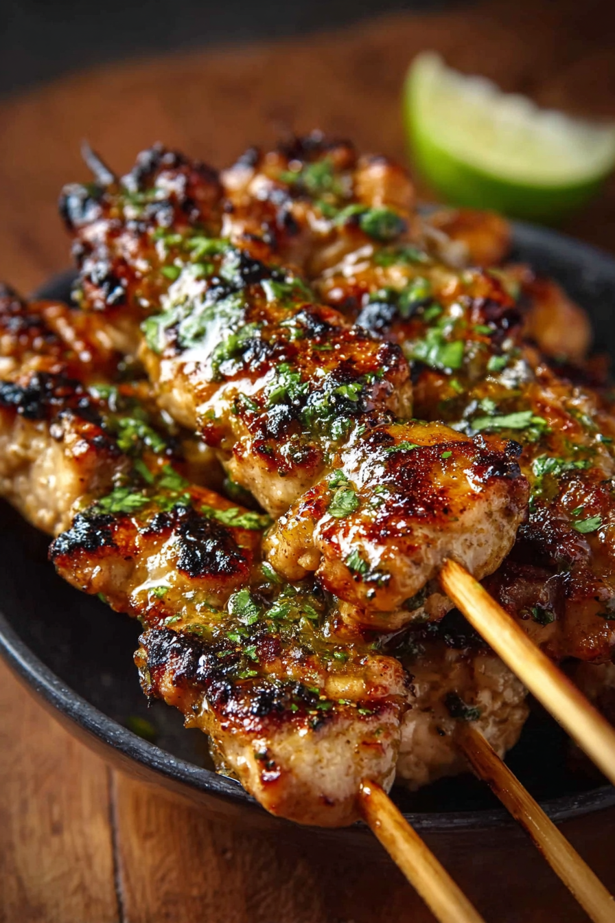 Juicy Coconut-Lime Chicken Skewers with Thai Herbs