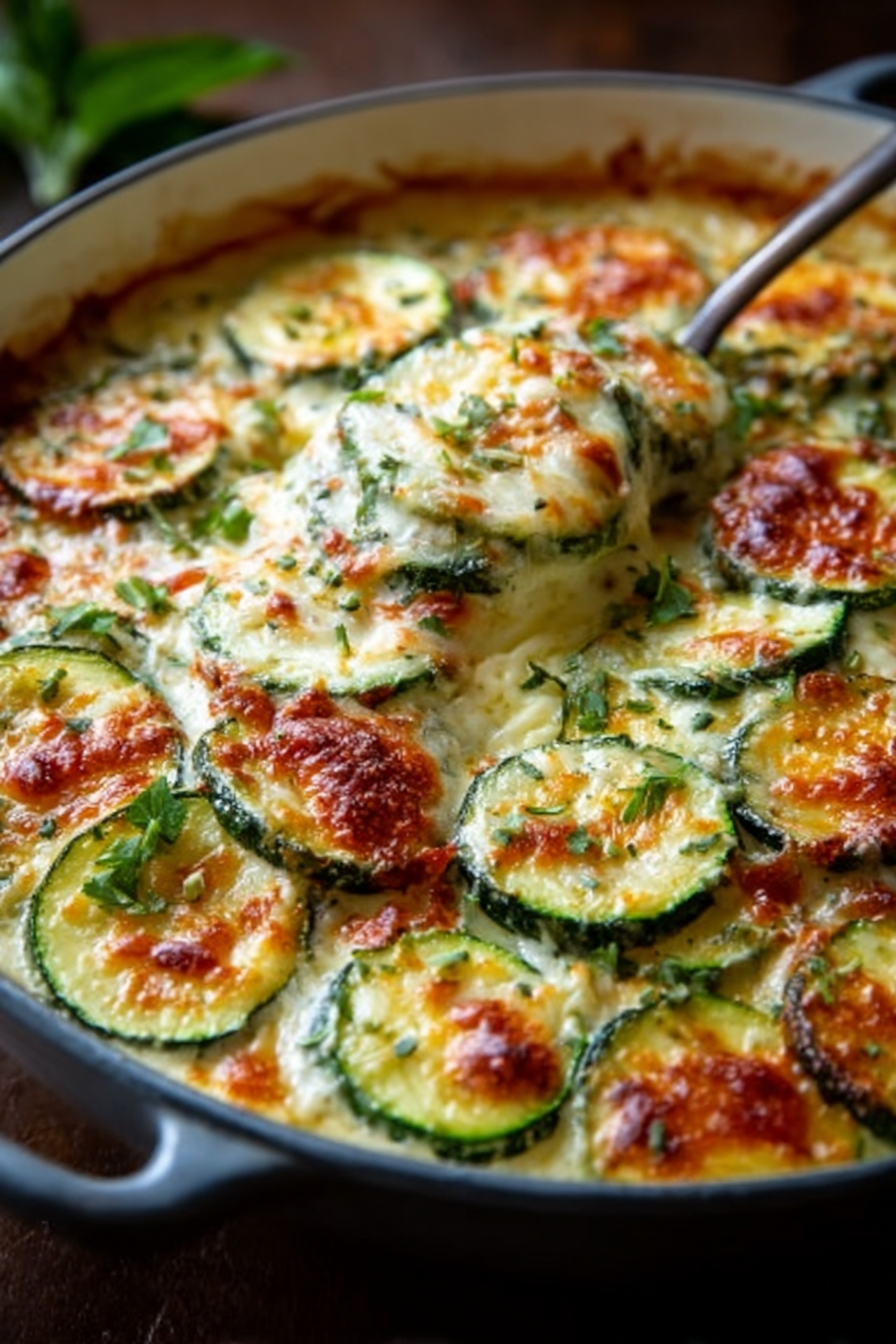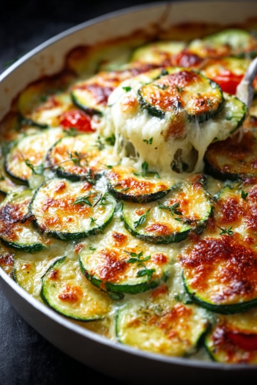 The inspiration for this dish came during one of those “what’s in the fridge” moments. I had a few zucchinis left from a farmer’s market visit and a handful of cheese that needed using up. I tossed everything into a baking dish with garlic, olive oil, and a sprinkle of herbs — and the aroma that filled the kitchen was irresistible. The result was so satisfying that it quickly became one of my go-to comfort recipes.