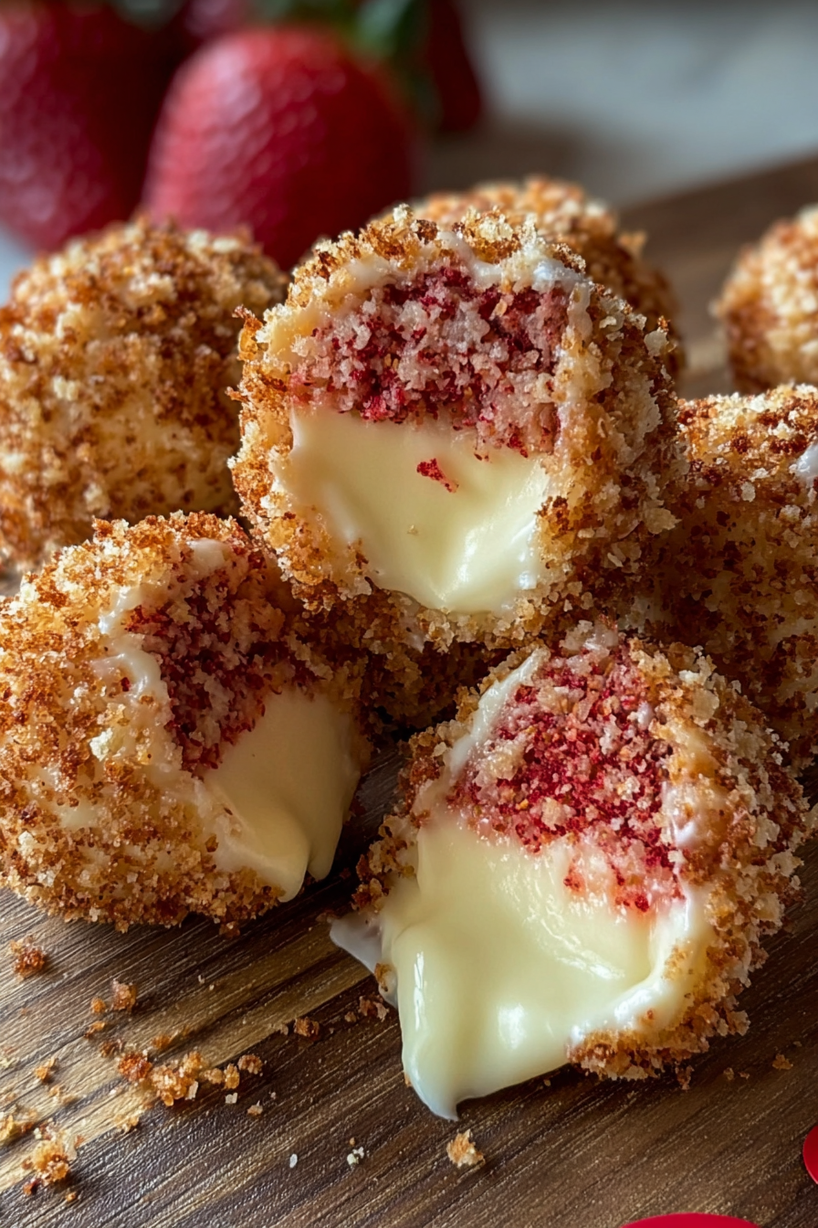 Creamy cheesecake bites topped with a nostalgic strawberry crunch, perfect for parties or anytime you crave a sweet handheld treat.