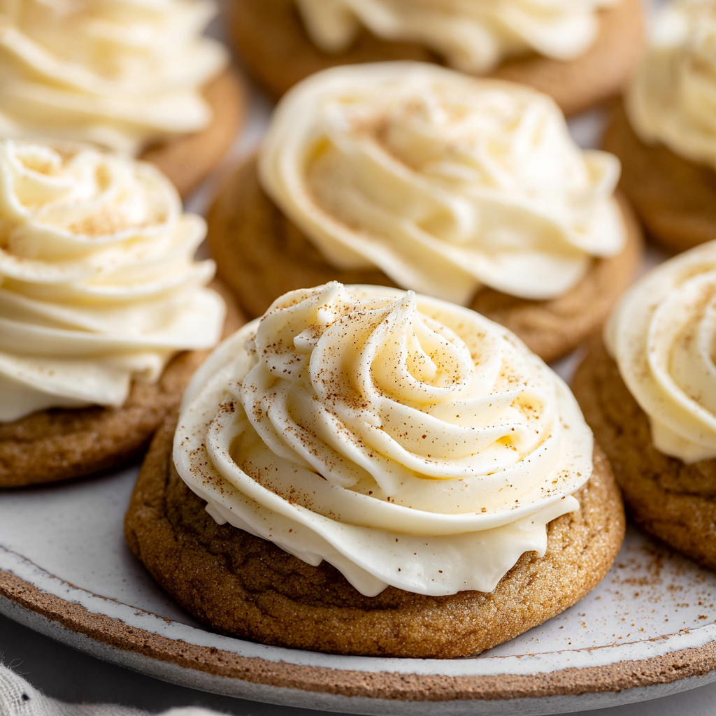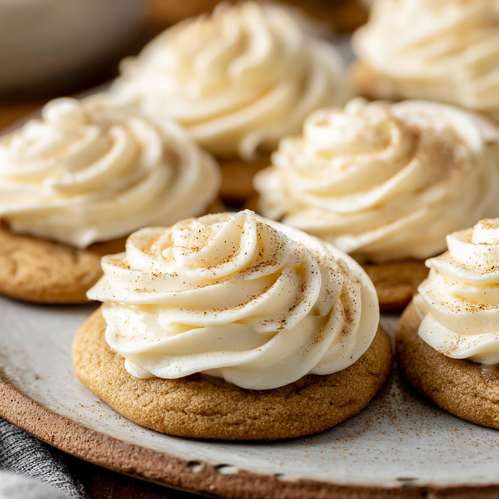 For a festive presentation, use a piping bag with a star tip to swirl the frosting, then dust with nutmeg or edible gold glitter. You can even add mini gingerbread men or holiday sprinkles on top. I love making a cookie platter with red and white striped napkins — it’s a simple way to make your Eggnog Cookies the star of the dessert table.