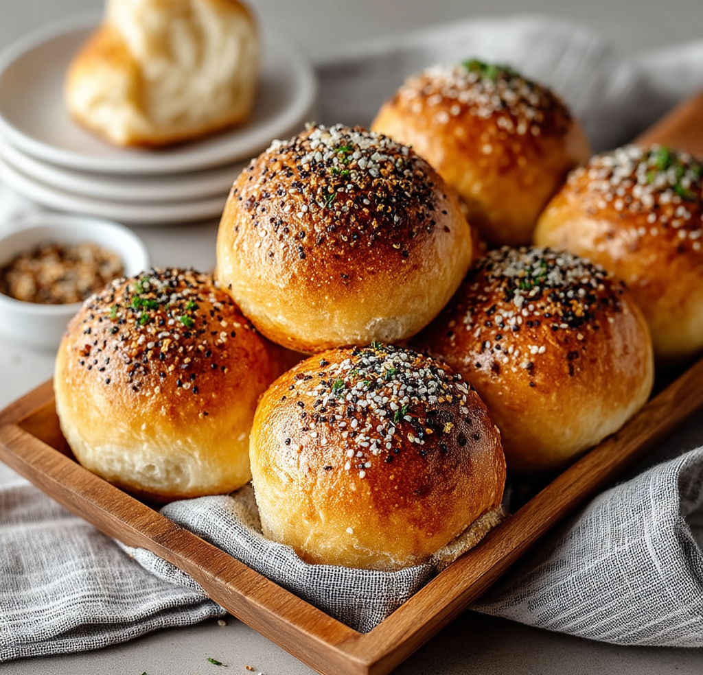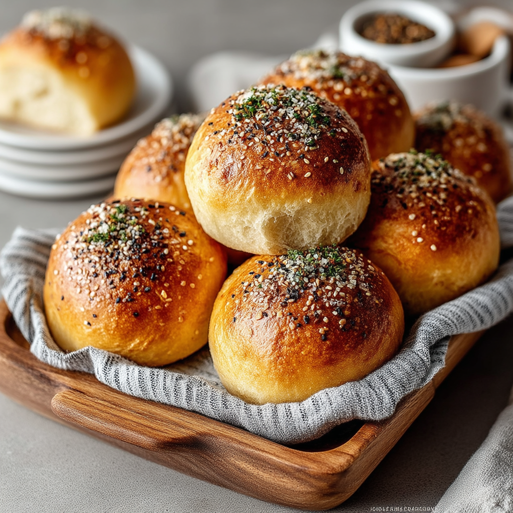 Brush each boiled bun with egg wash and sprinkle generously with everything bagel seasoning. Bake in the preheated oven for 20–25 minutes, or until golden brown and puffed. - Cool Slightly and Serve