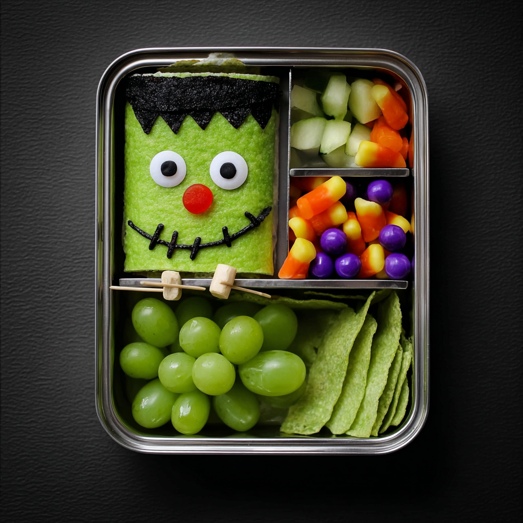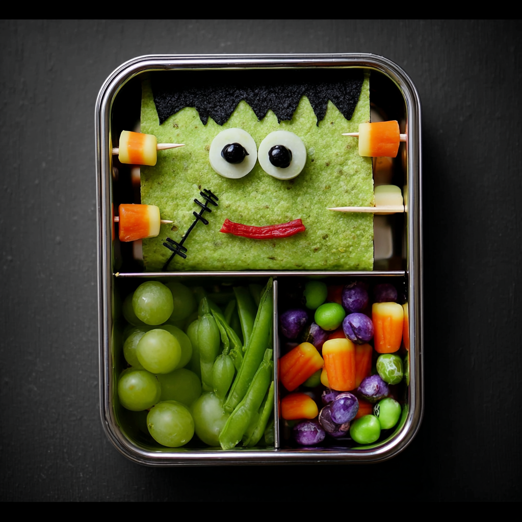 So grab your spinach wraps, get silly with seaweed, and bring Frankenstein to life—lunchbox style. Whether it’s a creepy weekday lunch or a haunted party spread, this monster’s ready to munch!