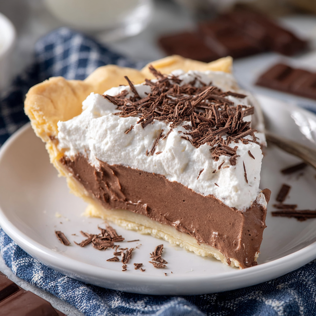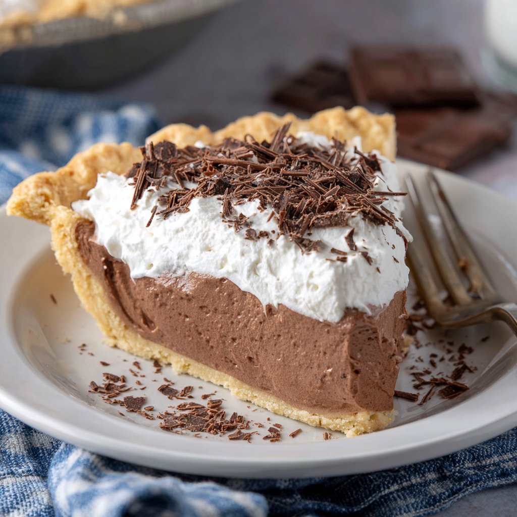 Unlike traditional versions made in a round pie plate, this slab pie is built in a rectangular pan so it feeds more people—perfect for parties, potlucks, or family gatherings. With its rich, buttery base, fluffy chocolate mousse filling, and generous whipped cream topping, each bite melts in your mouth like velvet. Add some chocolate shavings on top and you’ve got yourself a full-blown showstopper.