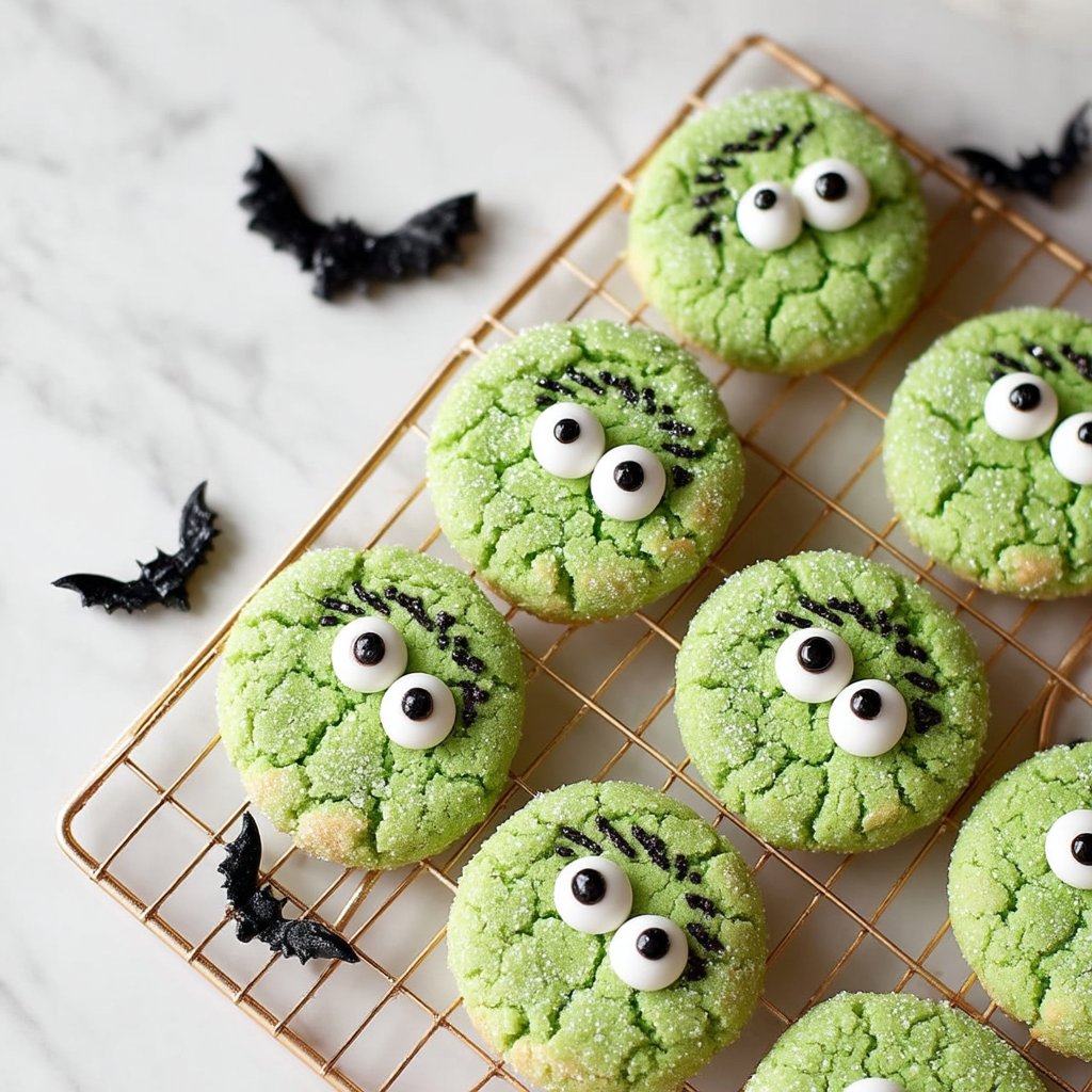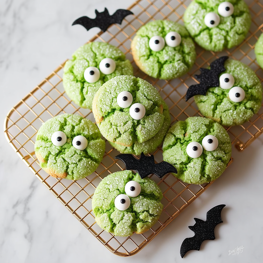 These cookies are ideal for Halloween parties, classroom events, or just a festive baking session at home. With just a few pantry staples—cake mix, eggs, oil, and sugar—you can whip up a big batch in no time. The green gel food coloring gives them their signature slime-monster look, while a swirl of white and black frosting transforms them into little edible creatures.