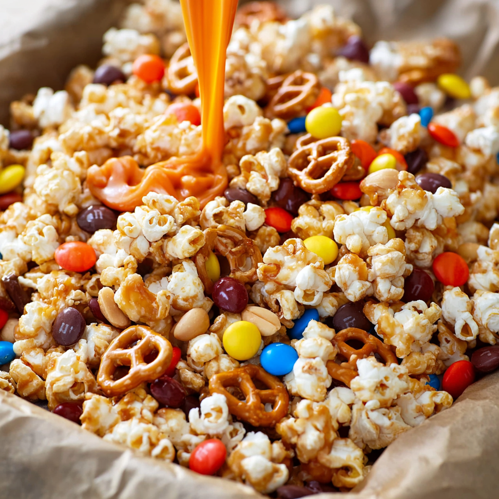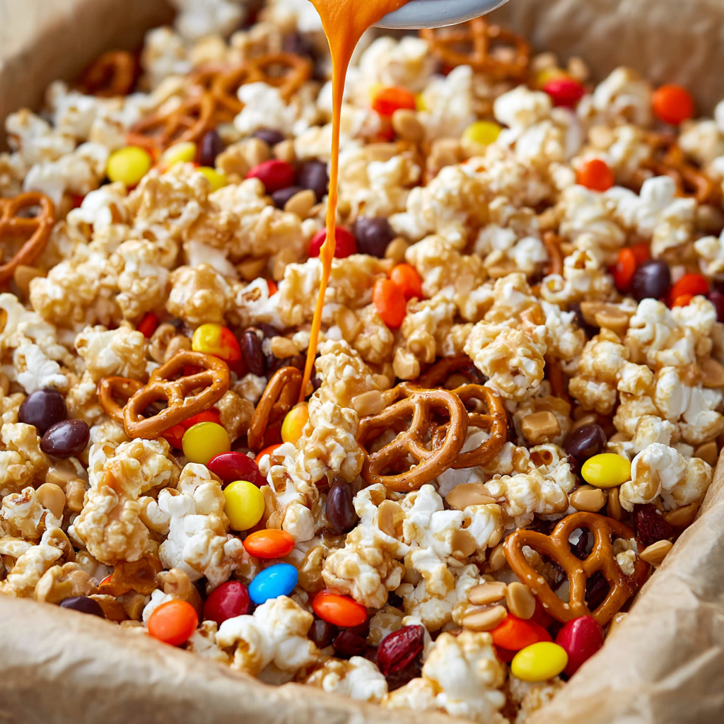 This Halloween Snack Mix with Peanut Butter Caramel is more than just a treat—it’s a party in a bowl. The blend of salty pretzels, crunchy popcorn, creamy caramel, and bursts of sweet candy makes for the ultimate seasonal snack. It’s easy to customize, quick to prep, and always gets rave reviews.
