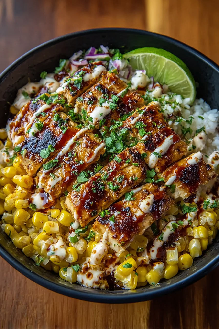 The Healthy and Delicious Street Corn Chicken Rice Bowl is proof that wholesome meals don’t have to be boring. With smoky chicken, sweet roasted corn, creamy tangy sauce, and vibrant toppings, it’s a satisfying dish that checks all the boxes: healthy, flavorful, and easy to prepare. Whether you’re cooking for family, friends, or just yourself, this bowl will brighten your table and keep you coming back for more. Try it once, and it may just become your new go-to recipe for busy weeknights and meal prep alike.