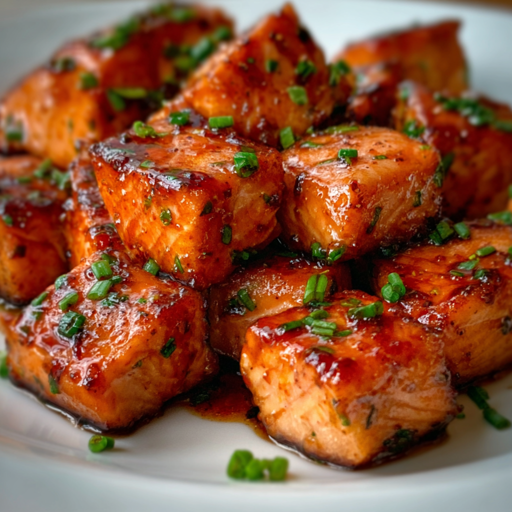 Crispy Hot Honey Air Fryer Salmon Bites with sweet heat, buttery sauce, and bold seasoning—quick, flavorful, and irresistible.