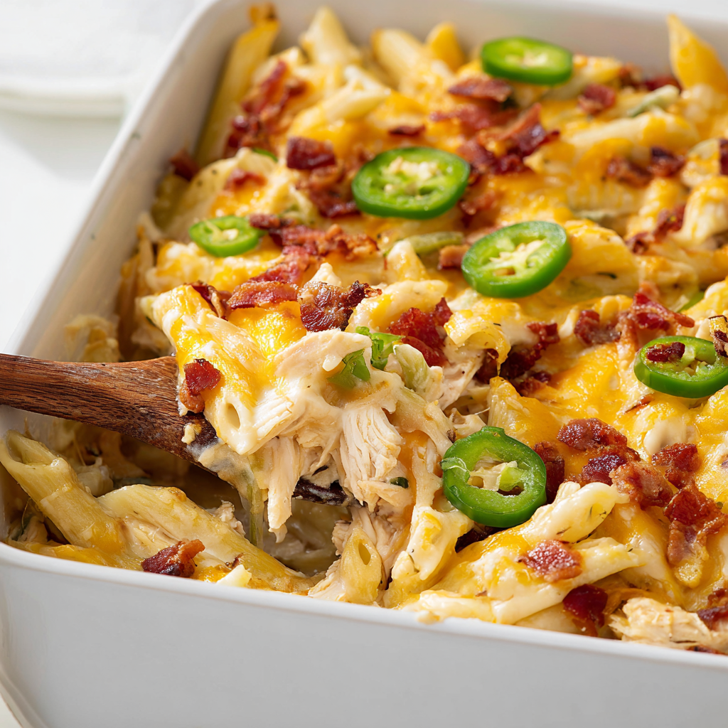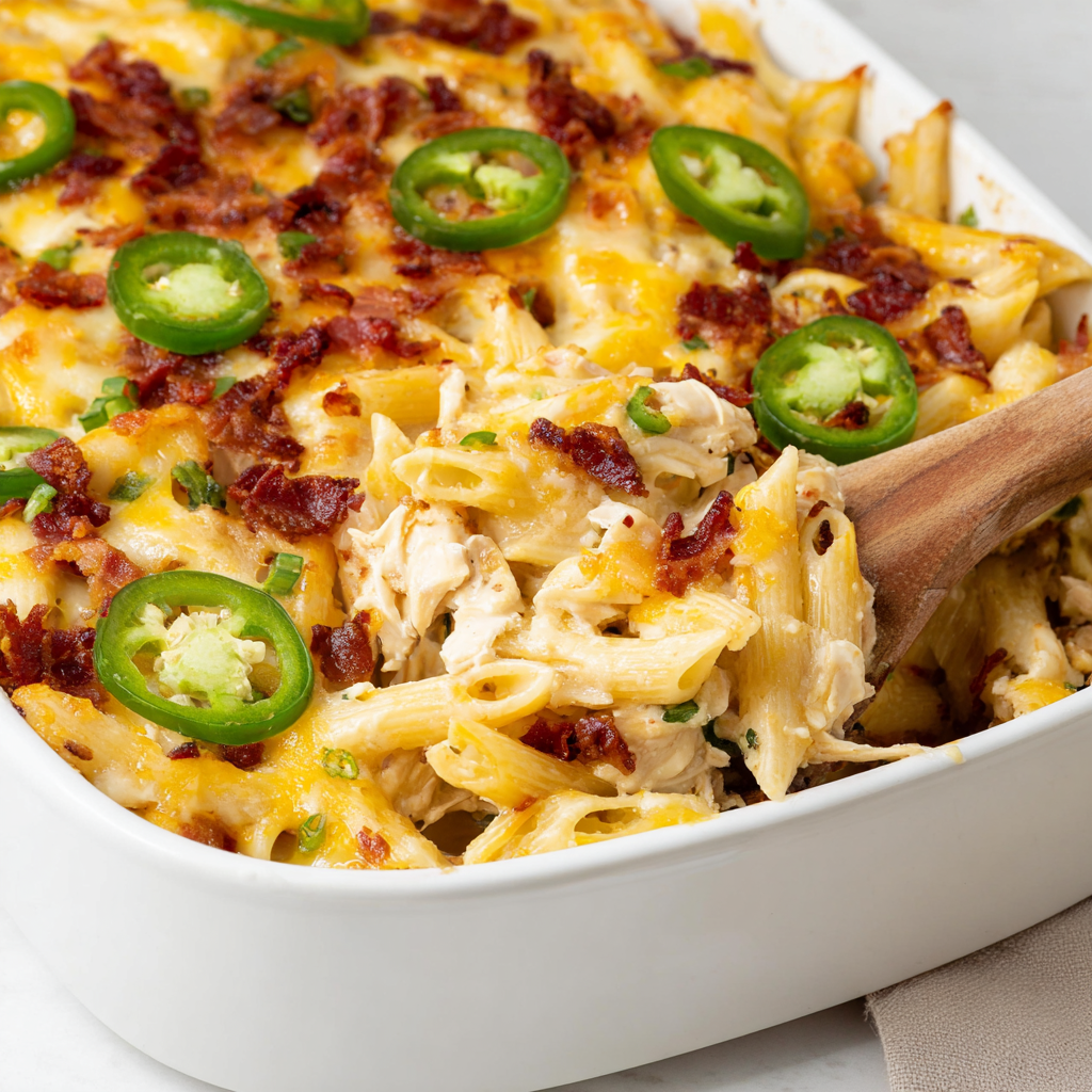 This Jalapeño Popper Chicken Bake is a rich, cheesy, and perfectly spicy twist on classic baked chicken. With layers of cream cheese, cheddar, jalapeños, and bacon, it’s creamy, smoky, and bursting with flavor—all baked into one easy, satisfying dish.