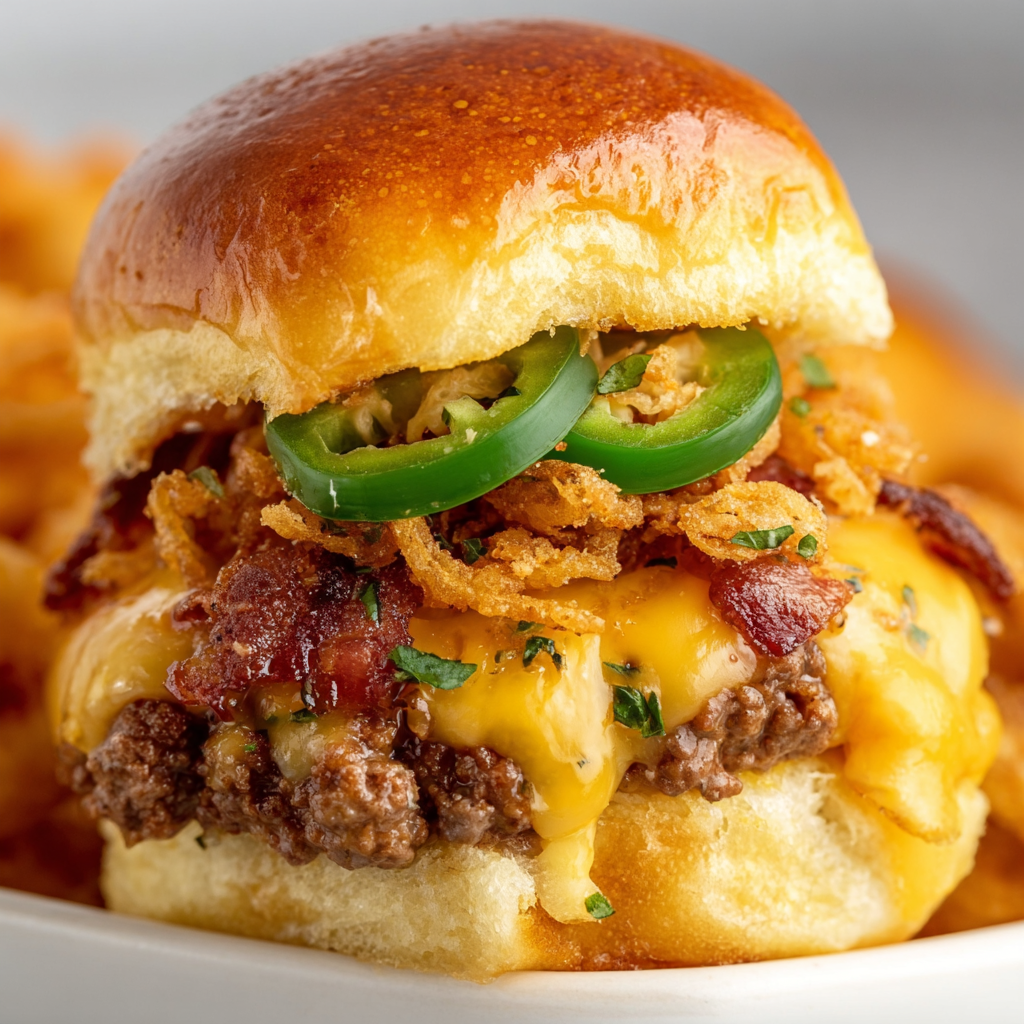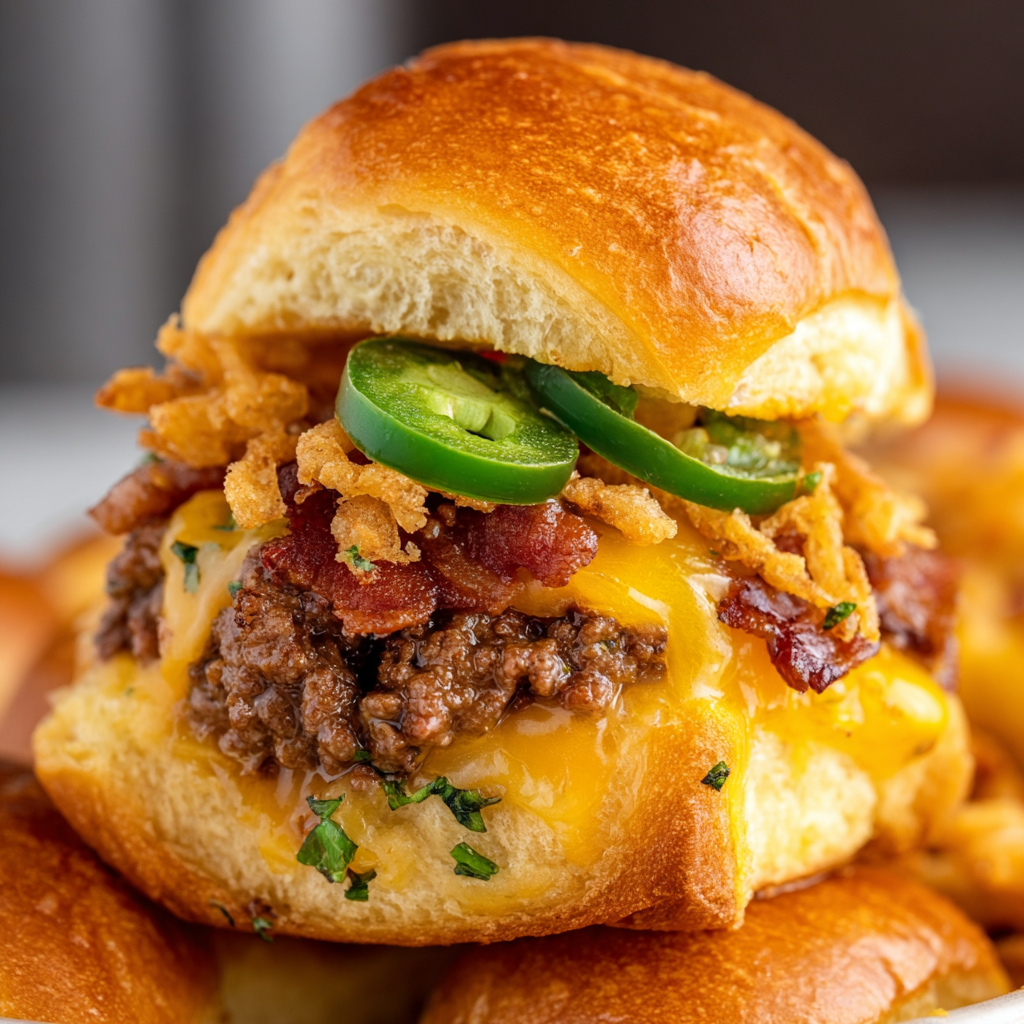 Juicy Cowboy Sliders topped with bacon, cheese, jalapeño, fried onions, and Cowboy Butter—bold, smoky mini burgers everyone loves.