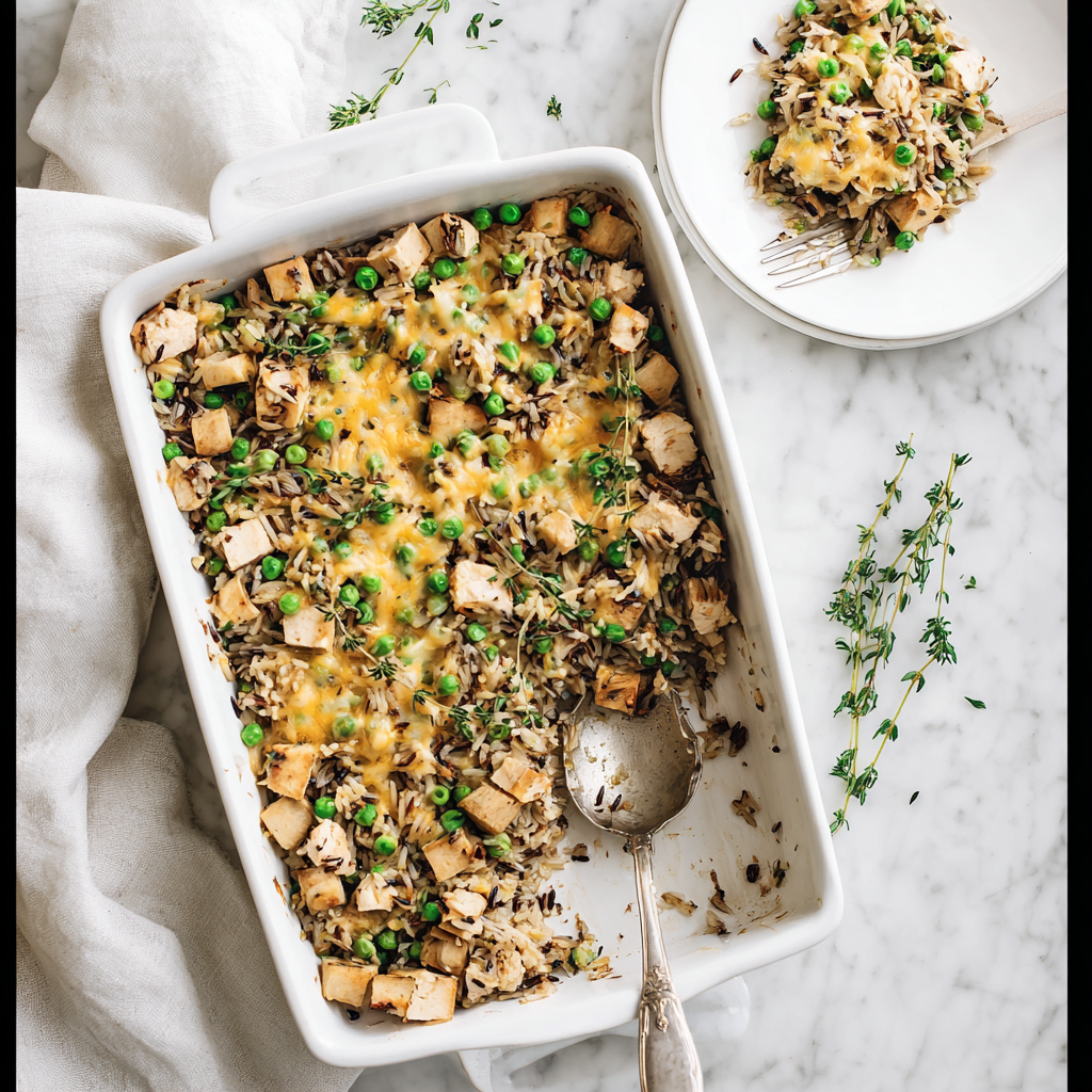 Instead of a carb-heavy pasta base, this version uses wild rice blend for extra texture, nuttiness, and fiber. The combination of diced mushrooms, onions, and thyme builds a rich, earthy flavor base, while arrowroot powder thickens the sauce without flour or roux. This dish is gluten-free, freezer-friendly, and a fantastic way to turn leftovers into a meal that feels brand new.