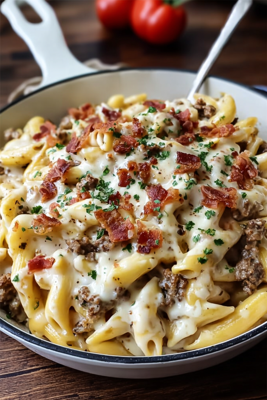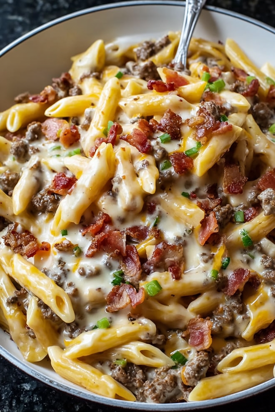 Loaded Bacon Cheeseburger Alfredo Pasta