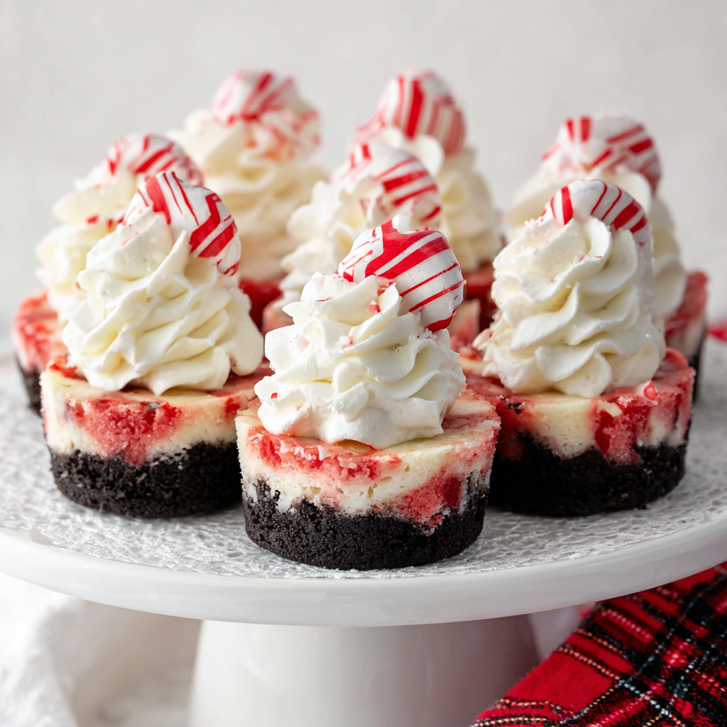 For parties, remove liners before topping, then place each cheesecake on a mini plate or decorative wrapper. Add a drizzle of chocolate syrup or a peppermint stick for an elegant presentation.