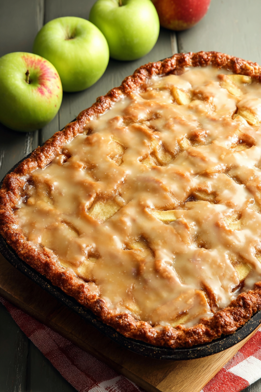 This flat apple pie recipe has been passed down through generations in many families, including mine. My mother often baked it on chilly fall weekends when the orchard apples were fresh and abundant. Unlike fancy desserts, this pie wasn’t about perfection—it was about togetherness. I remember the smell of cinnamon, the crackle of cornflakes, and the golden crust that seemed almost magical when pulled from the oven. As kids, we didn’t care about presentation; we cared about grabbing the warmest square before anyone else did. Today, I bake it not just for its flavor but for the memories it brings to my own table.