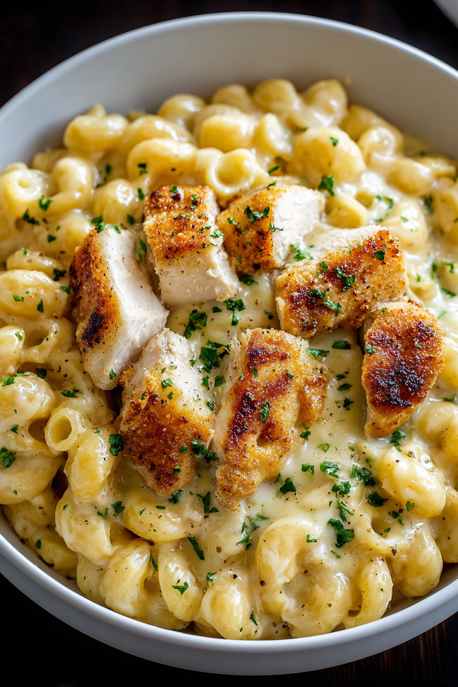 Parmesan Garlic Chicken Mac and Cheese – Comfort in Every Creamy Bite!