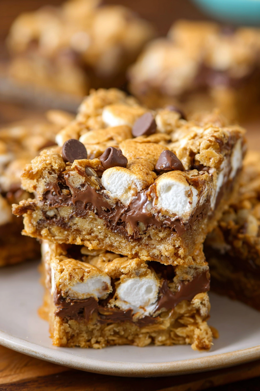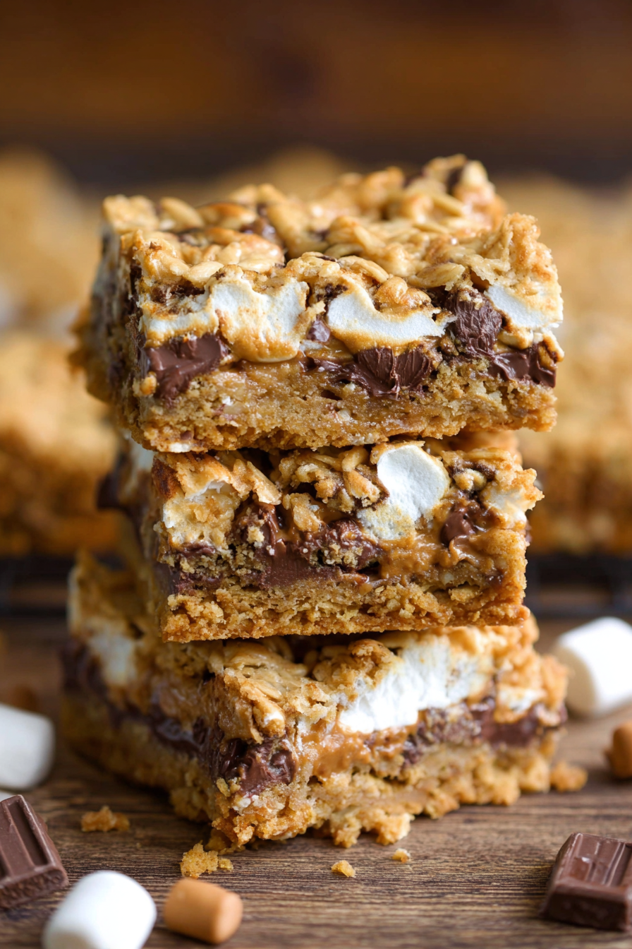 Chewy peanut butter oatmeal bars layered with gooey marshmallows and melted chocolate—just like campfire s’mores in cookie form. Perfect for sharing or snacking!