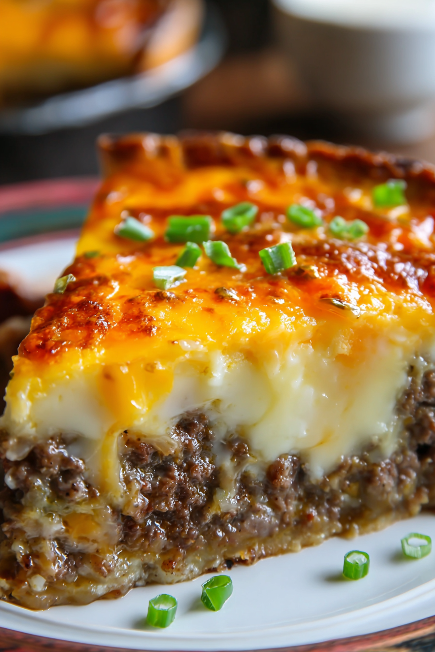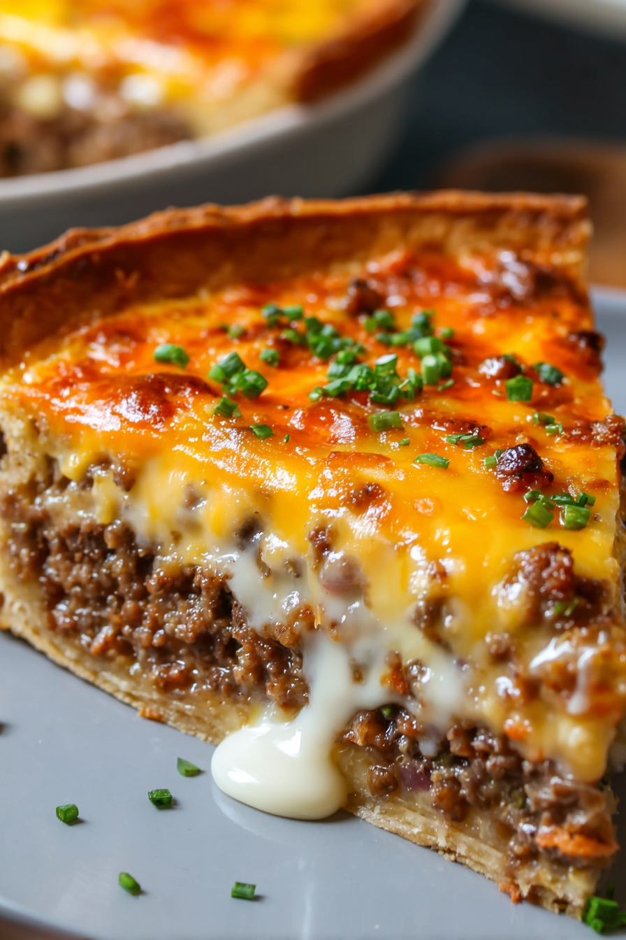 Ground beef is, of course, the star of this dish. It gives the pie its hearty, savory flavor and classic cheeseburger feel. Pairing it with onions not only adds depth but also a touch of sweetness that balances the richness of the beef. Cheese, usually cheddar, melts into the meat mixture and forms a gooey layer that ties everything together. The batter—a mix of milk, eggs, and a bit of baking mix—creates a light, fluffy crust that holds the pie together while adding a comforting, almost biscuit-like texture. Together, these ingredients mimic all the best parts of a cheeseburger in a new, cozy format.
