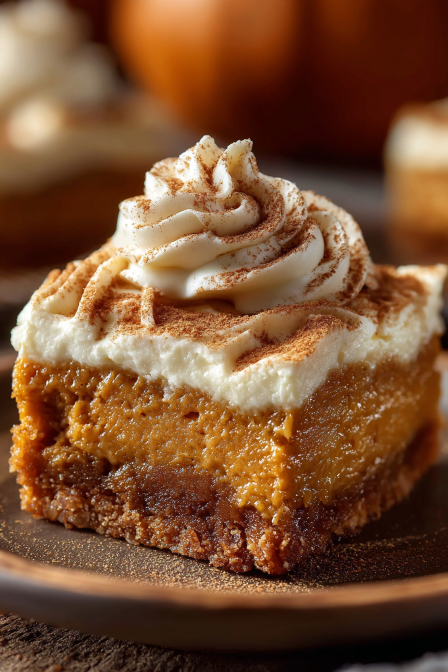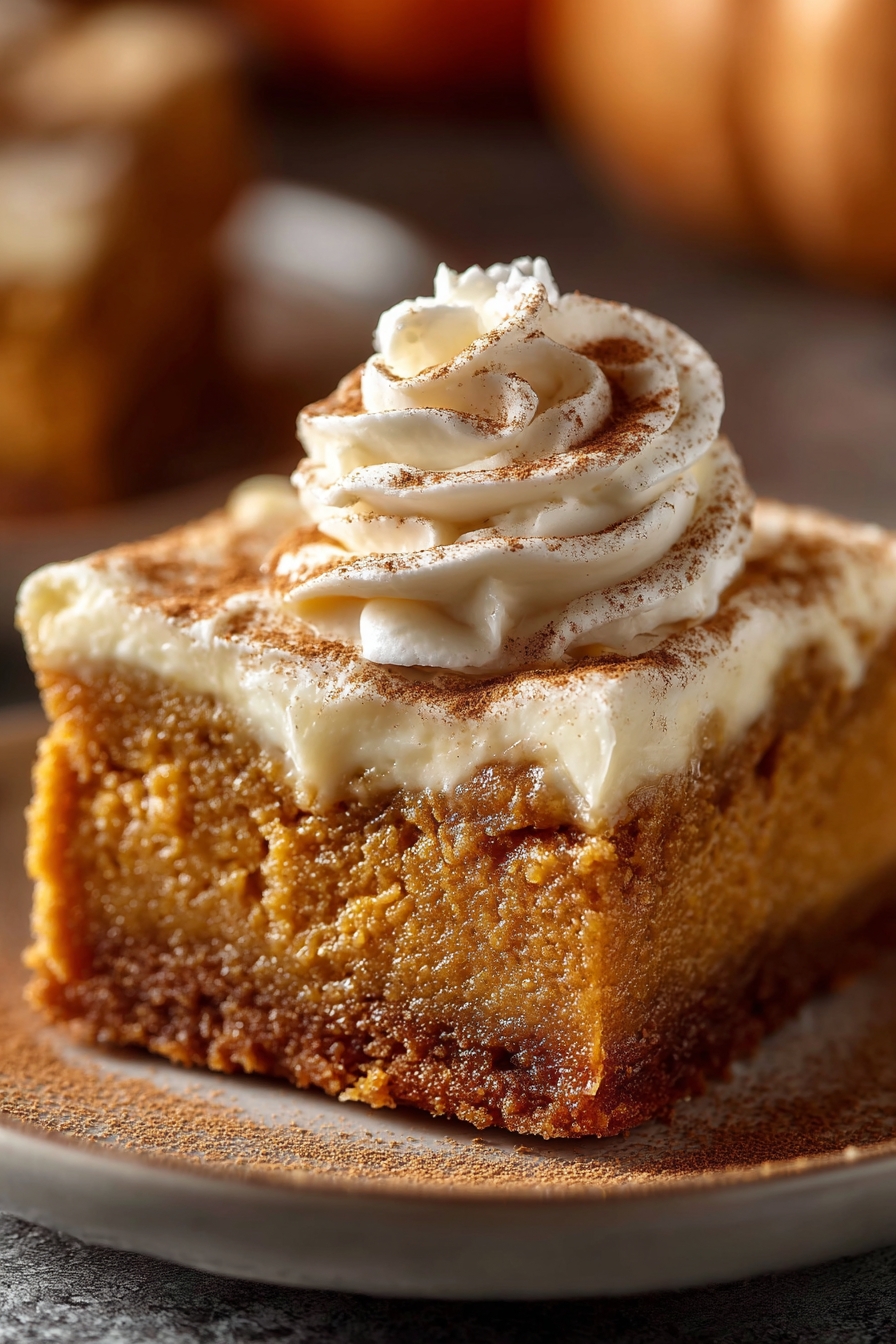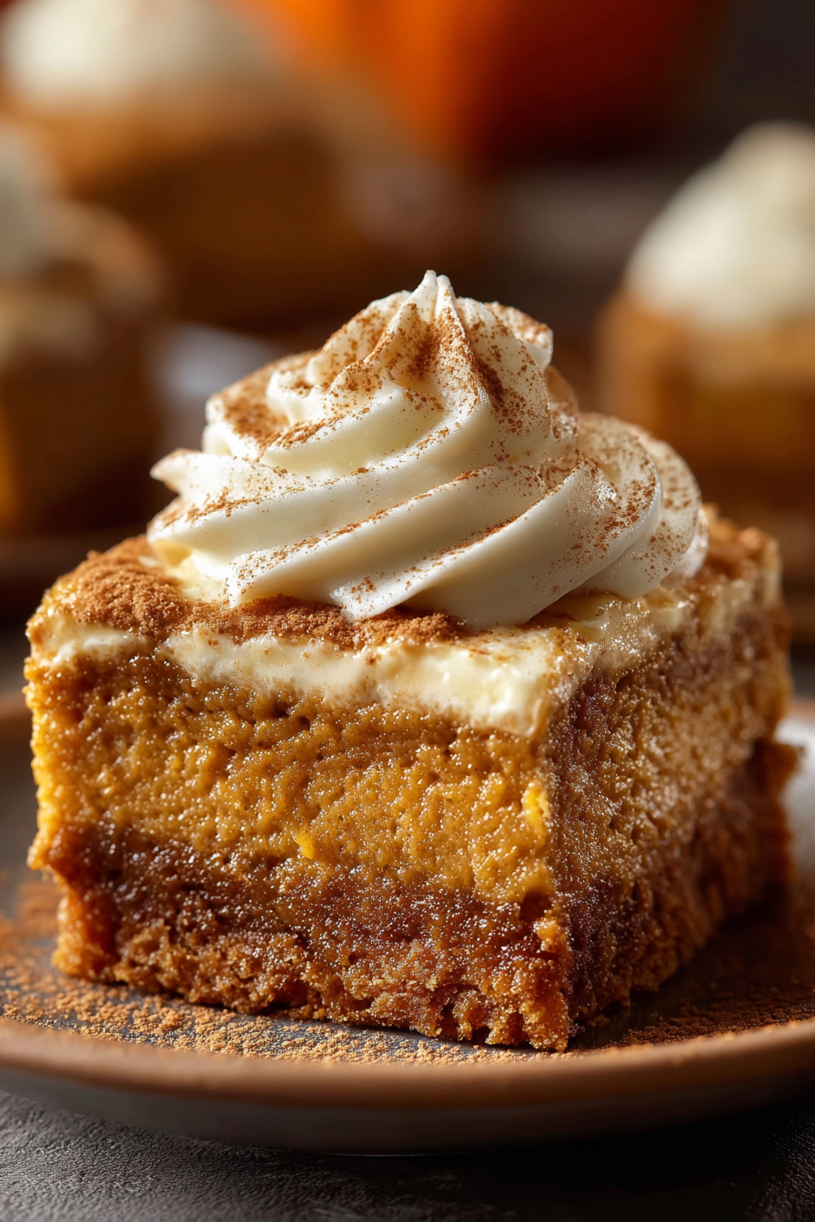 A rich, fall-inspired dessert with a buttery cake base and creamy pumpkin spice filling. Perfect for holidays or cozy autumn nights.