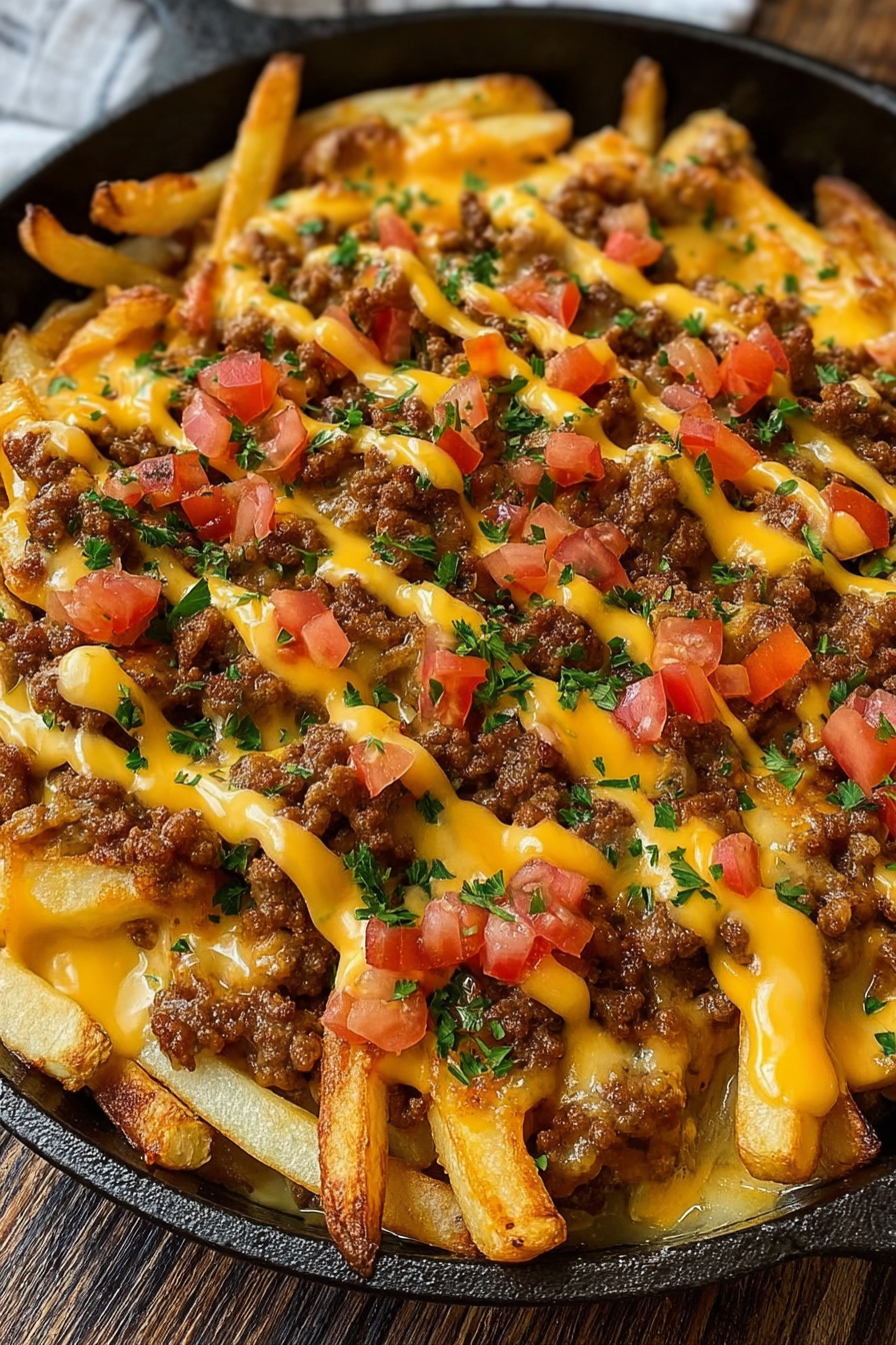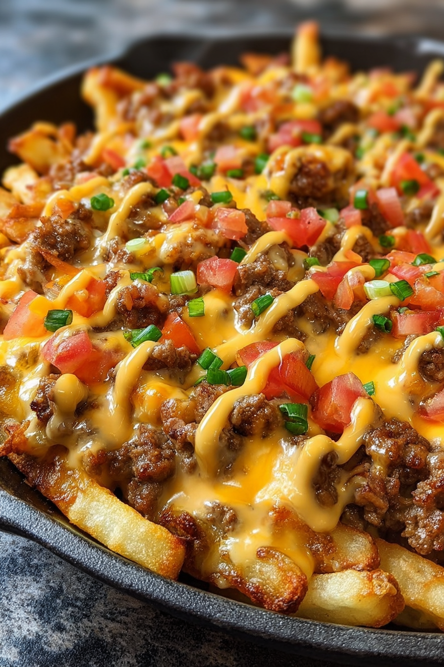 - Top with cheese: Sprinkle the remaining cheese generously over the fries. This creates a deliciously cheesy crust that brings everything together.