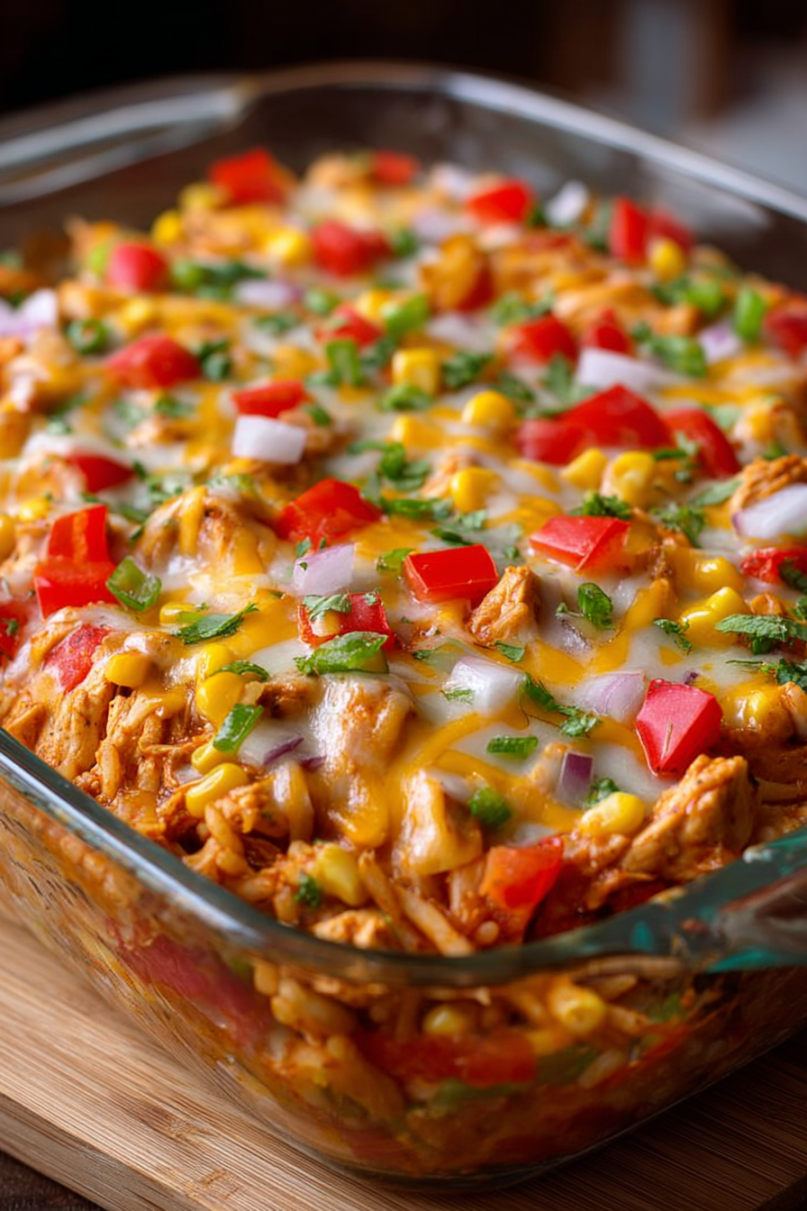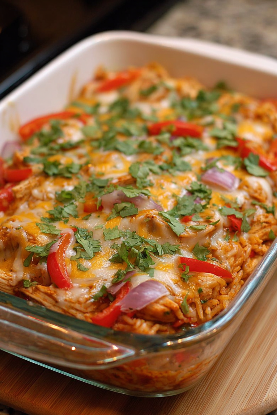 A creamy, cheesy, and flavorful Tex-Mex inspired casserole loaded with chicken, rice, and fajita veggies. Perfect for family dinners.