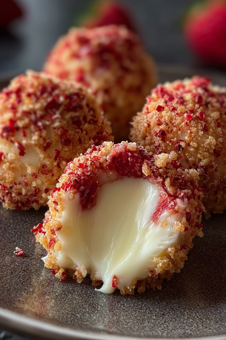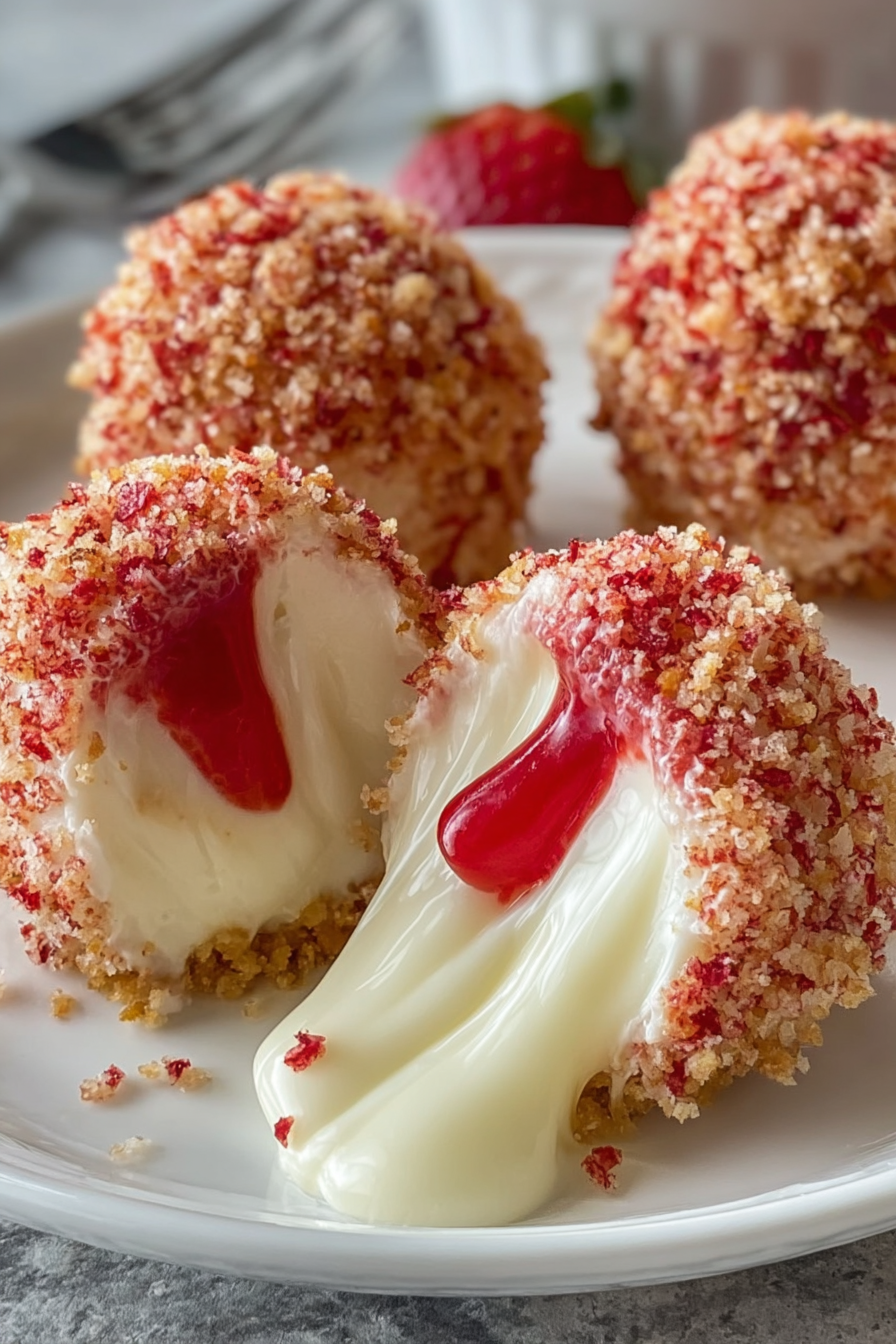 My love for Strawberry Crunch Cheesecake Bites started as a childhood memory. I was always fascinated by those pink strawberry shortcake ice cream bars with their signature crunchy coating. When I began experimenting with homemade cheesecakes, I wanted to recreate that nostalgic crunch and creamy flavor in a more sophisticated yet approachable way. These cheesecake bites were the perfect fusion of both worlds.